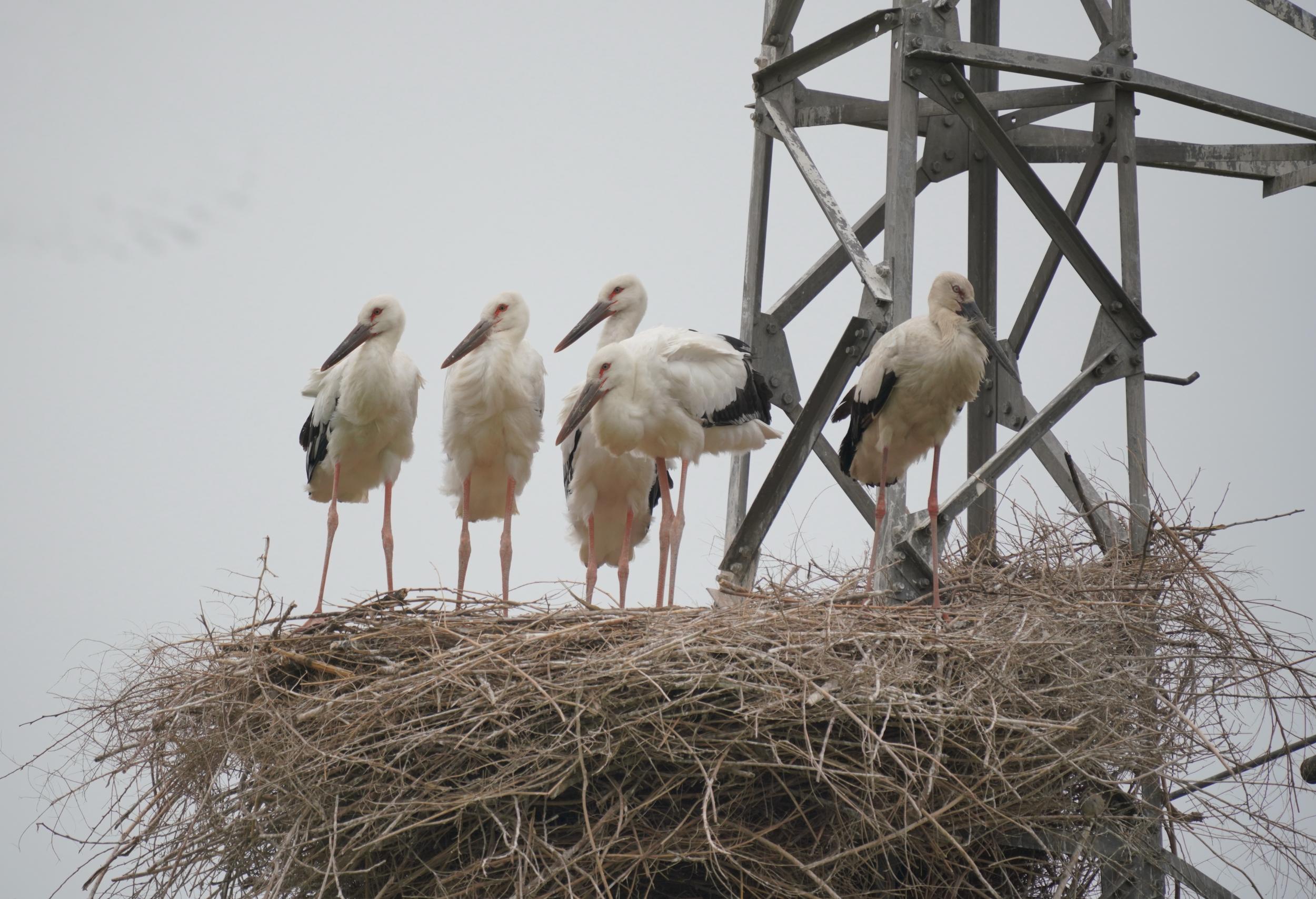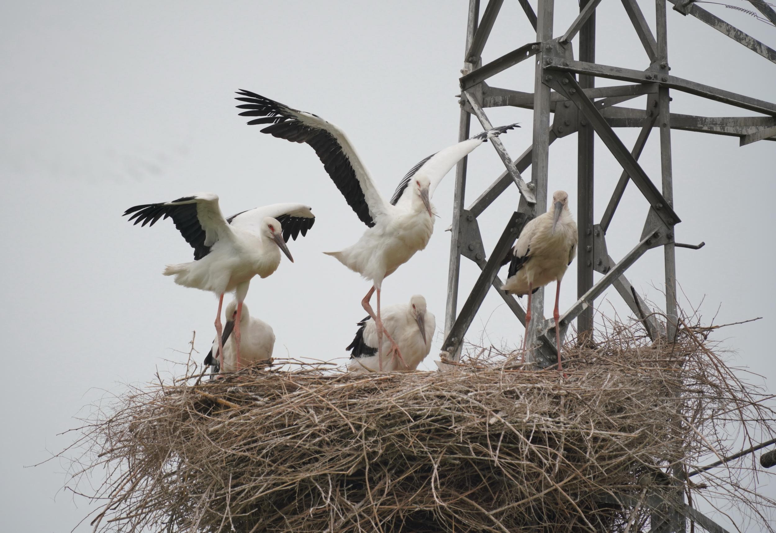 近日,国家一级保护动物东方白鹳在唐山市丰南区黑沿子镇沿海湿地的铁塔上筑巢育雏。据介绍,目前已有8对东方白鹳孵化出了17只雏鸟。自2018年起,东方白鹳开始在黑沿子镇沿海湿地筑巢孵化。