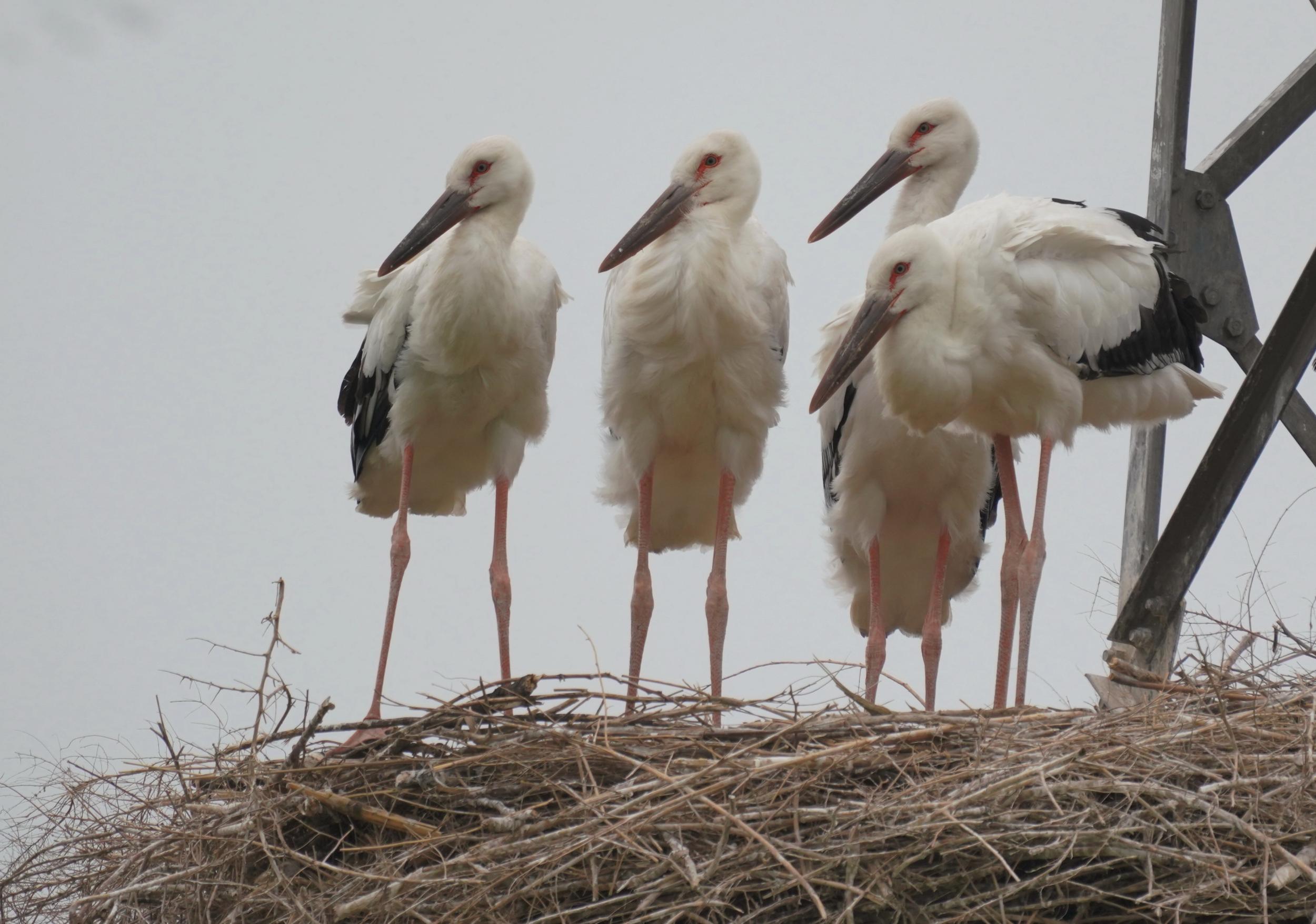 6月9日,东方白鹳雏鸟在巢中。新华社记者 杨世尧 摄