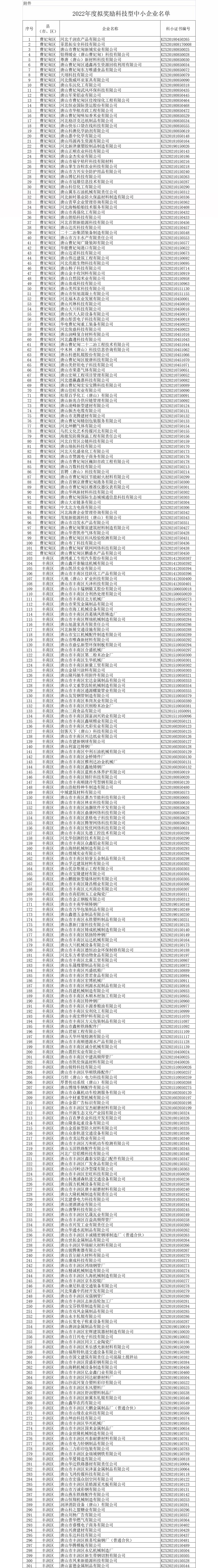 根据中共唐山市委办公室、唐山市人民政府办公室《推进环渤海地区新型工业化基地建设40 条支持政策(2020 年修订)>》(唐办发〔2020〕18号)精神,结合财政预算安排,经企业申报、归口管理部门推荐及现场考察、专家评审和市科技局研究,拟对符合条件的1525家科技型中小企业进行奖励,现予以公示(详见附件)。公示期为2022年12月23日至12月29日。