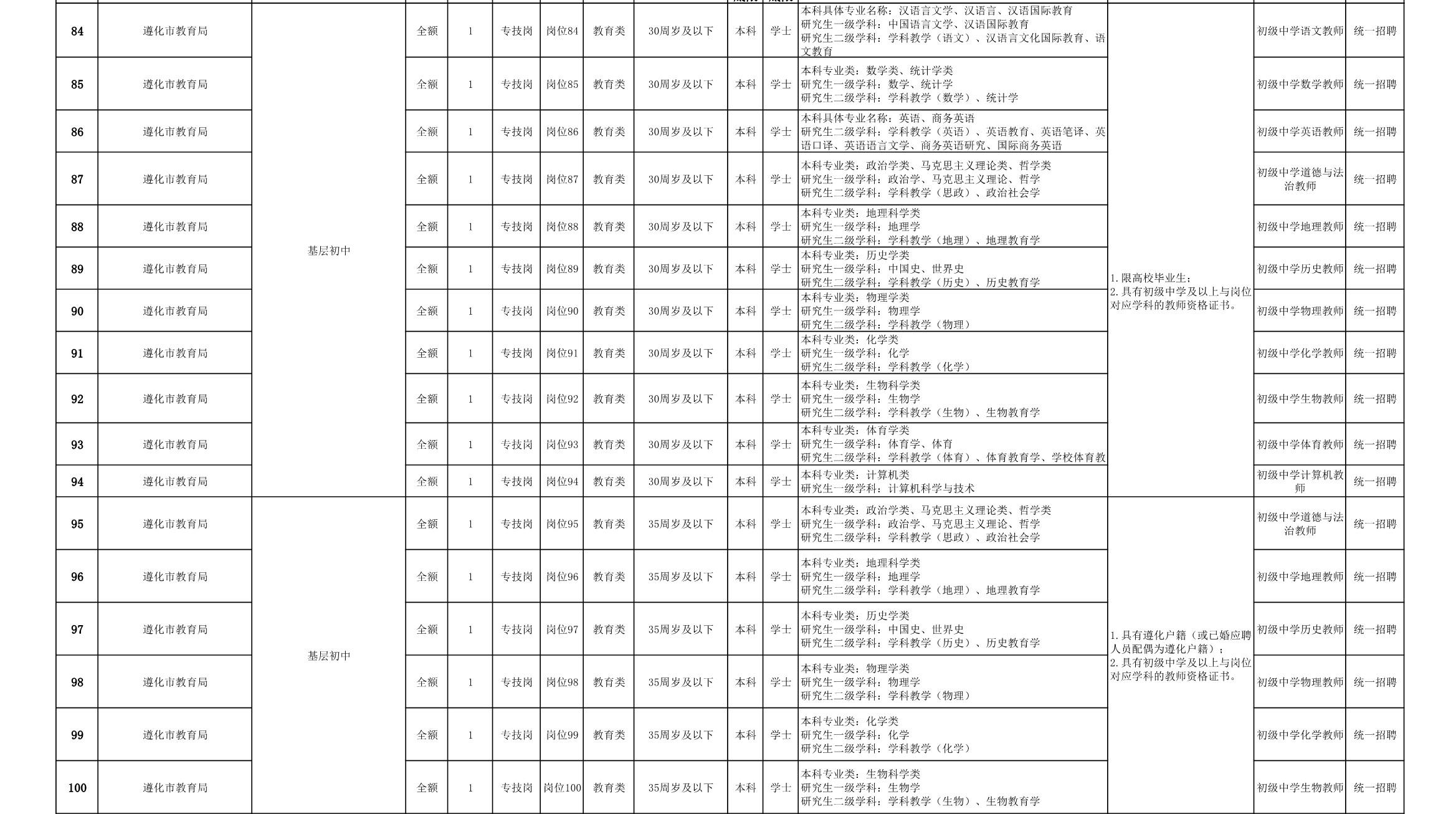 本次共公开招聘事业编制工作人员300名,其中:教育系统216名,市直事业单位59名,各乡镇基层事业单位25名。招聘的岗位、人数、岗位条件等详见《遵化市2023年事业单位公开招聘工作人员岗位信息表》。