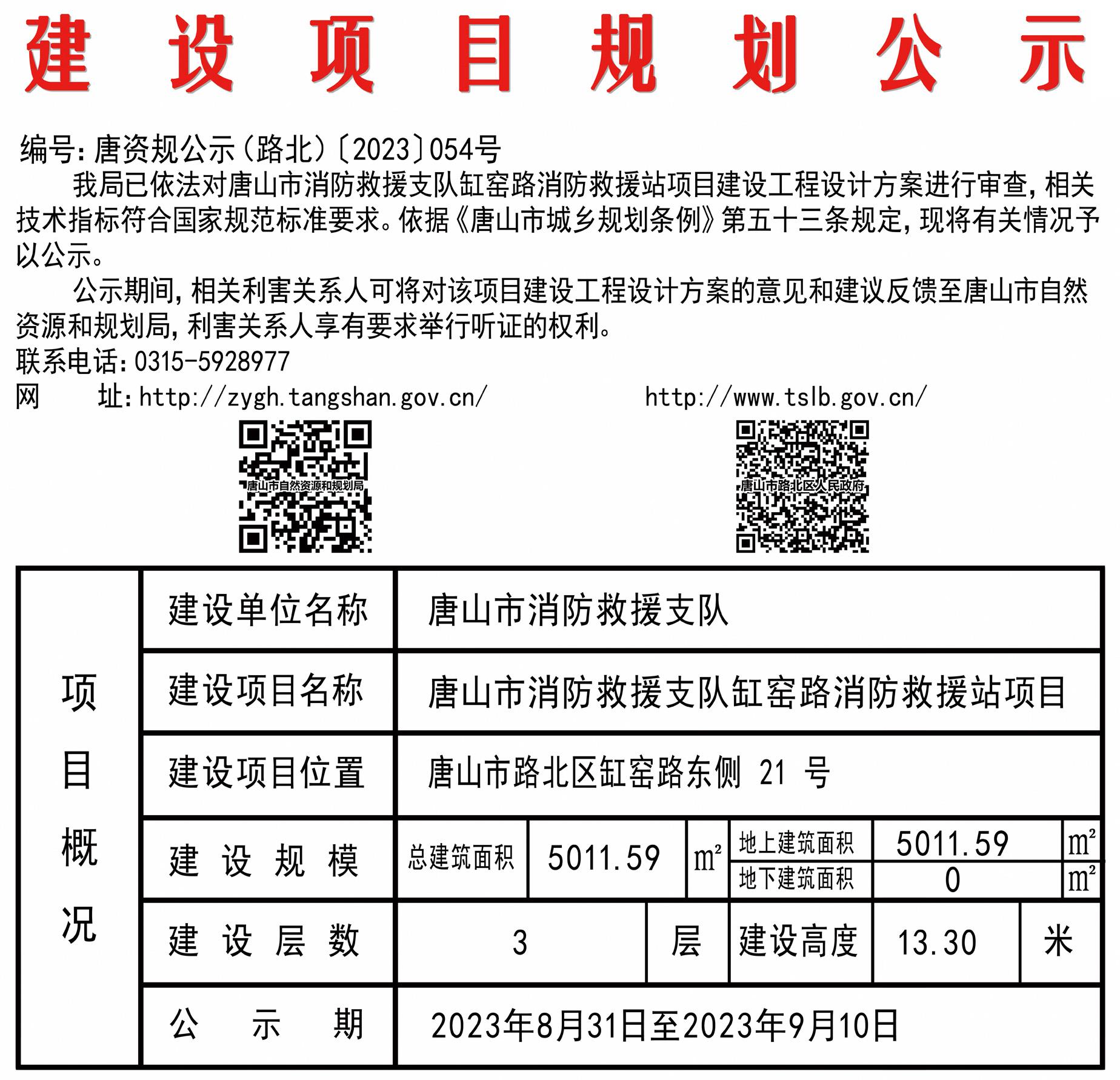 近日,中国唐山网站发布了《建设项目规划公示(唐山市消防救援支队缸窑路消防救援站项目)》,详情如下:
