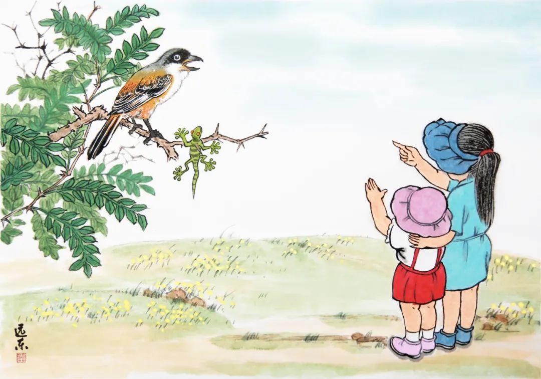 鵙,即伯劳鸟。伯劳鸟为小型猛禽,以各种小动物为食,常将猎物挂在树枝上,有“屠夫鸟”之称。古人认为芒种时节阳气旺盛、阴气初生,喜阴的伯劳鸟感知到阴气,开始在枝头鸣叫。