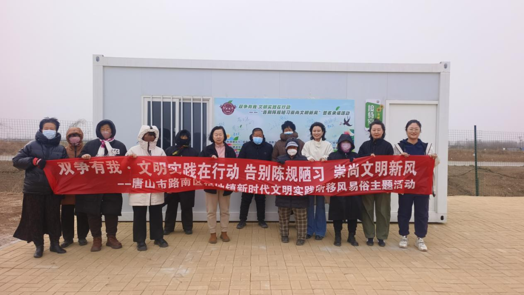 现场发放《唐山市关于“破除陈规陋习 树立文明新风”的倡议书》,向村民宣传移风易俗相关内容,引导大家携手摒弃旧俗,共建文明乡村。