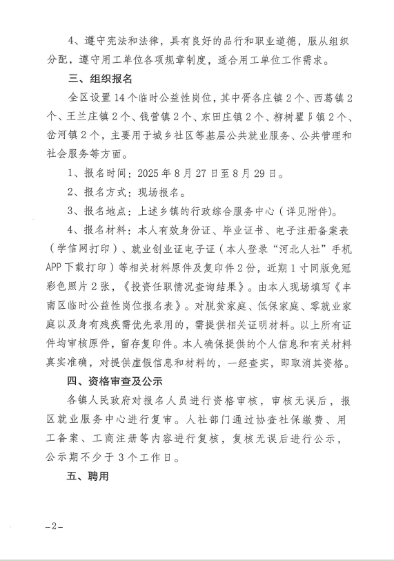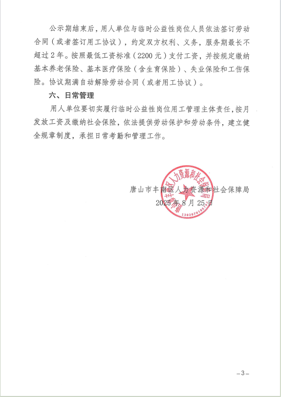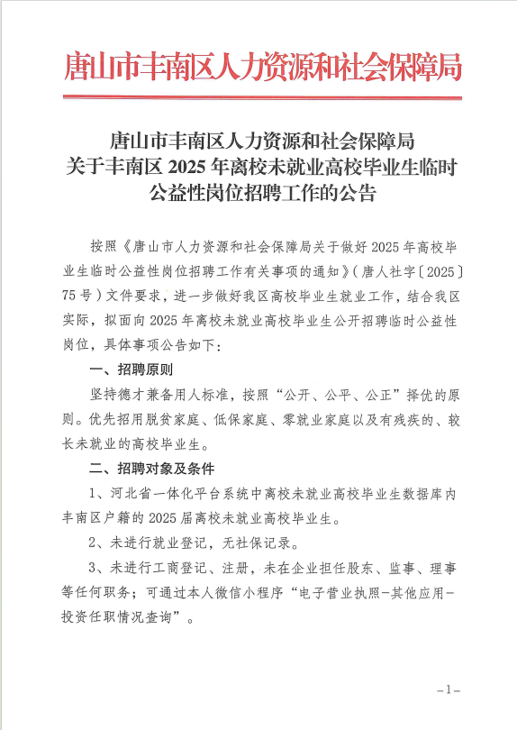 丰南区2025年离校未就业高校毕业生临时公益性岗位招聘
