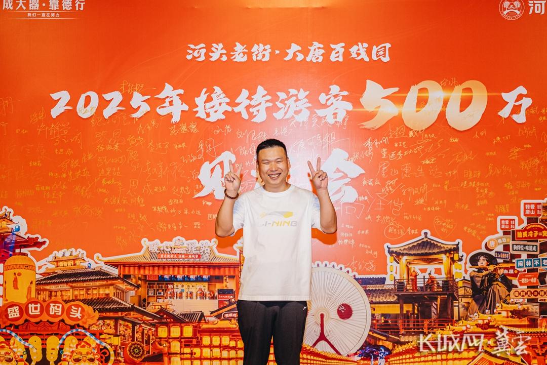 河头老街景区2025年度游客累计接待量突破500万人次纪念现场。