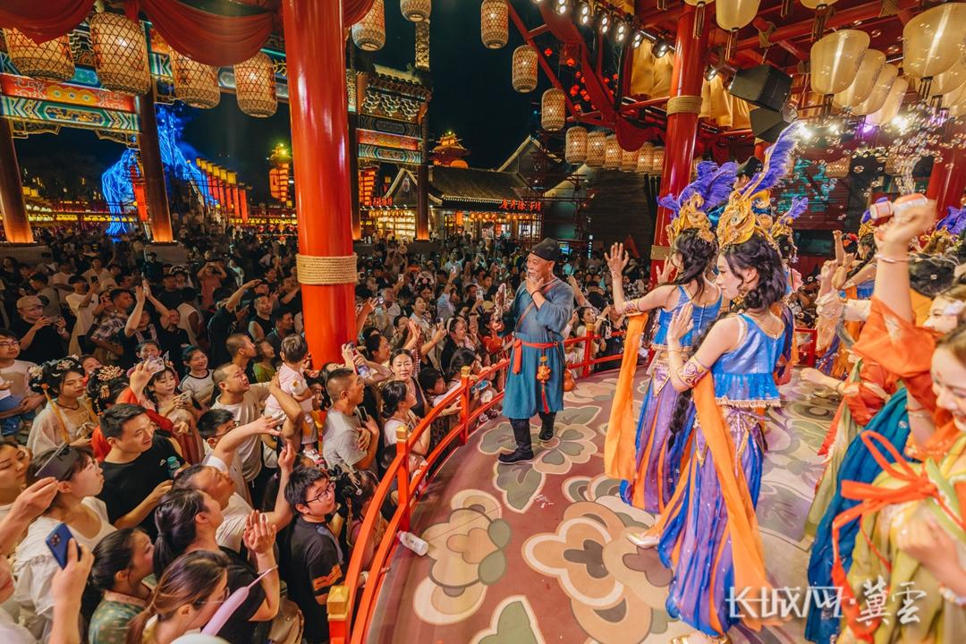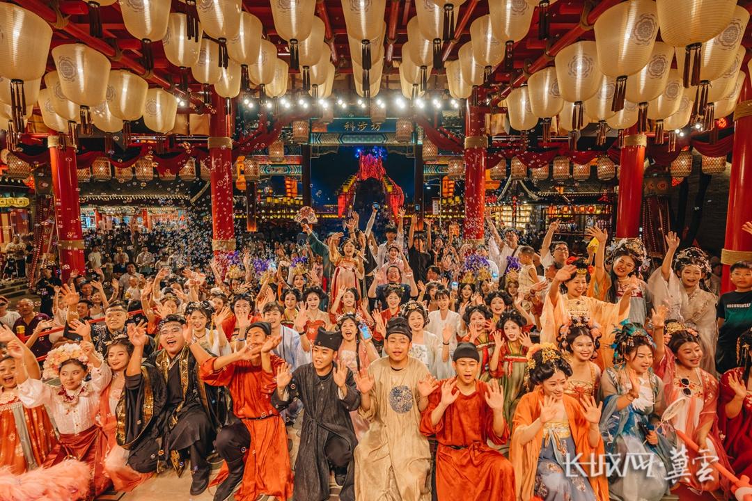 今年以来,河头老街共为游客奉上超10万场精彩演出。其中,《唐王东征》被游客称为“一生必看”的演出,神秘美艳的《丝路驼铃》、技艺精湛的《狮王争霸》、美不胜收的《凤鸣天驷》、爆笑全场的《大唐奇侠传》、热血沸腾的《江湖浪涌》,盛大隆重的《百戏巡游》……无一不是580多名演职人员的倾心付出。