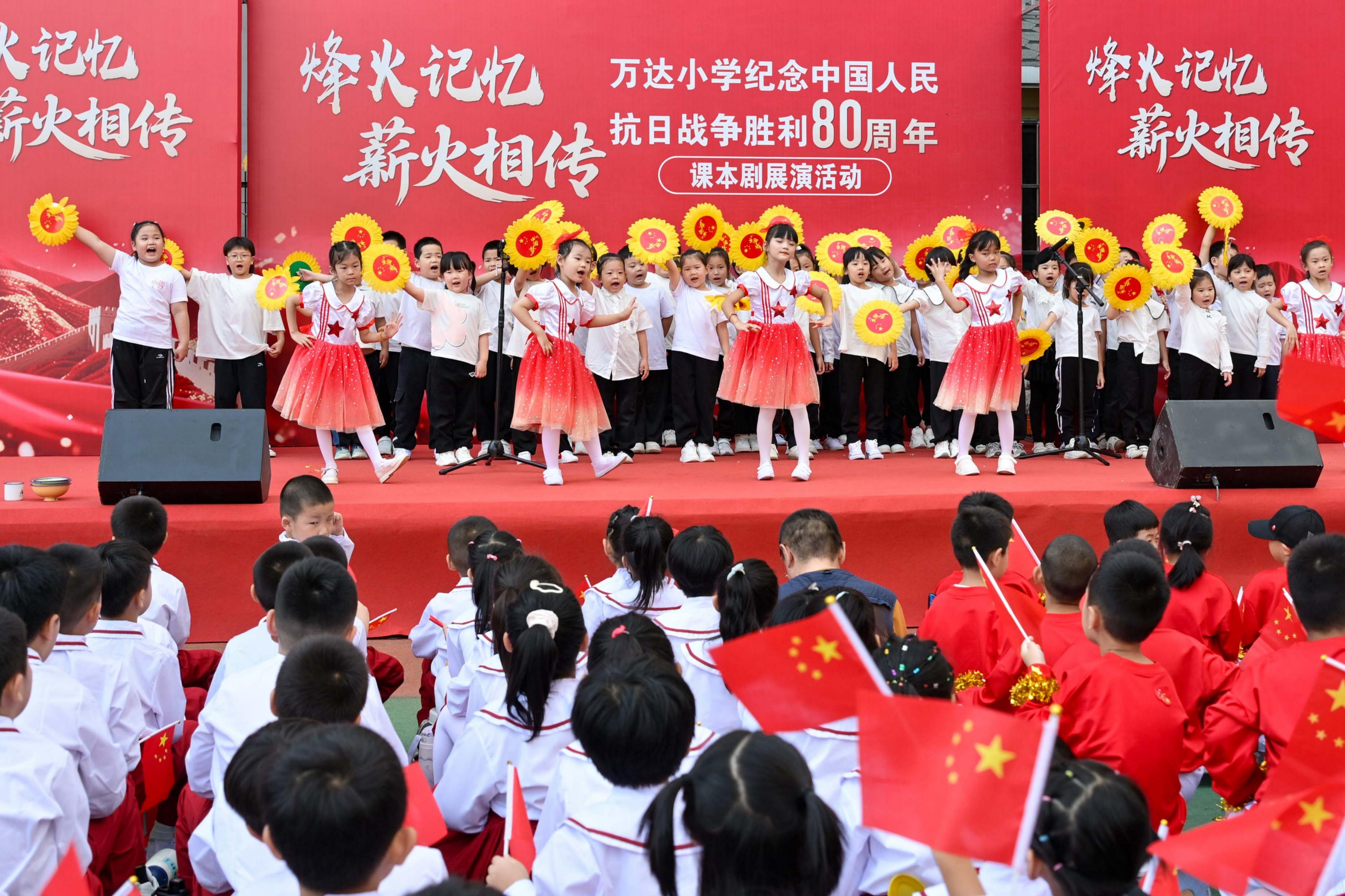 环渤海新闻网消息(记者 刘大民 通讯员 吉莉)在秋意渐浓、举国迎庆的日子里,万达小学以“烽火记忆 薪火相传”为主题,举办纪念中国人民抗日战争胜利80周年红色课本剧展演。全校师生与家长齐聚校园共赴这场红色之约,孩子们通过鲜活的演绎再现英雄故事,家长们用掌声见证成长,师生与家长在红色文化的浸润中重温峥嵘岁月,凝聚起浓厚的爱国情怀。