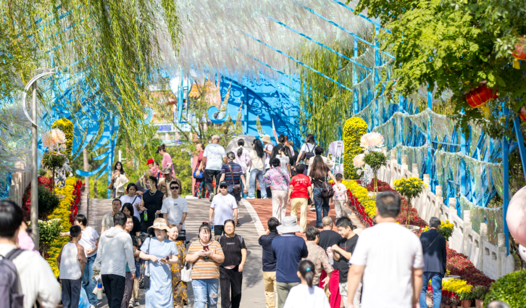 繁花似锦,歌声嘹亮。唐山南湖旅游景区处处洋溢着家国同庆的热烈氛围。以“菊韵满南湖·欢歌颂国庆”为主题,景区在国庆中秋假期推出国庆主题晚会、歌唱祖国·唐山南湖广场音乐会、“菊舞南湖·锦绣唐山”2025唐山南湖金秋菊展、沉浸式实景体验剧《那年芳华》等系列活动,开启游客秋日游玩新体验。金秋菊展汇集了众多品种的万盏菊花,通过打造主题花坛、艺术造型等众多景观,为游客带来极具视觉冲击力和艺术感染力的观赏体验。丹凤朝阳广场区域则上演小丑互动、卡通玩偶、梦幻泡泡、国潮舞蹈、幸运大转盘、投壶等欢乐互动活动,吸引众多游客参与其中,引得现场笑声不断。