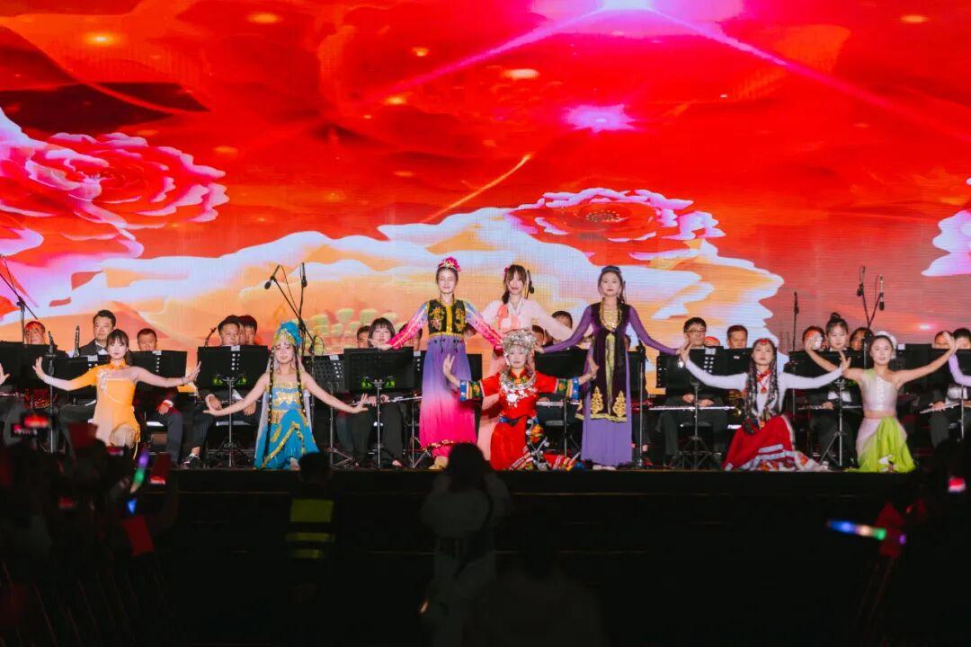 夜色下的唐山南湖旅游景区光影璀璨、处处欢歌。“锦绣中华·盛世欢歌”国庆主题晚会在《美丽中国》的欢快歌舞中拉开帷幕,《好日子》《钢铁洪流进行曲》《天安门广场看升旗》《祖国不会忘记》《我爱你中国》等节目轮番上演,为现场观众带来歌曲、舞蹈、器乐、语言等多种艺术享受,深情礼赞伟大祖国发展成就,抒发人民群众对祖国的无限热爱与美好祝福。动人的旋律、优美的舞姿、如潮般的掌声交织在一起,共同汇聚成一曲歌颂伟大祖国的动人乐章。