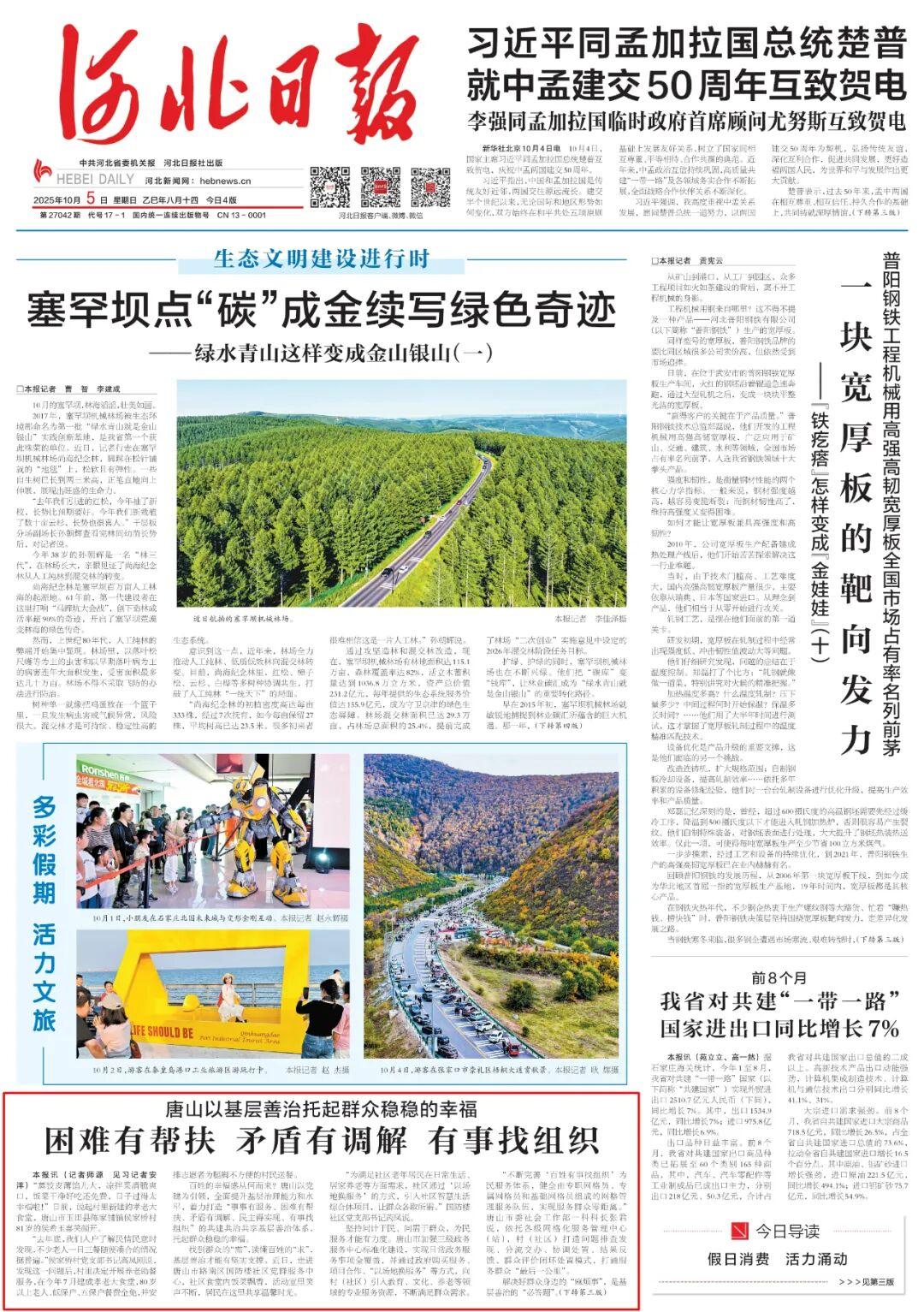 百姓的幸福感从何而来?唐山以党建为引领,全面提升基层治理能力和水平,着力打造“事事有服务、困难有帮扶、矛盾有调解、民主得实现、有事找组织”的共建共治共享基层善治体系,托起群众稳稳的幸福。