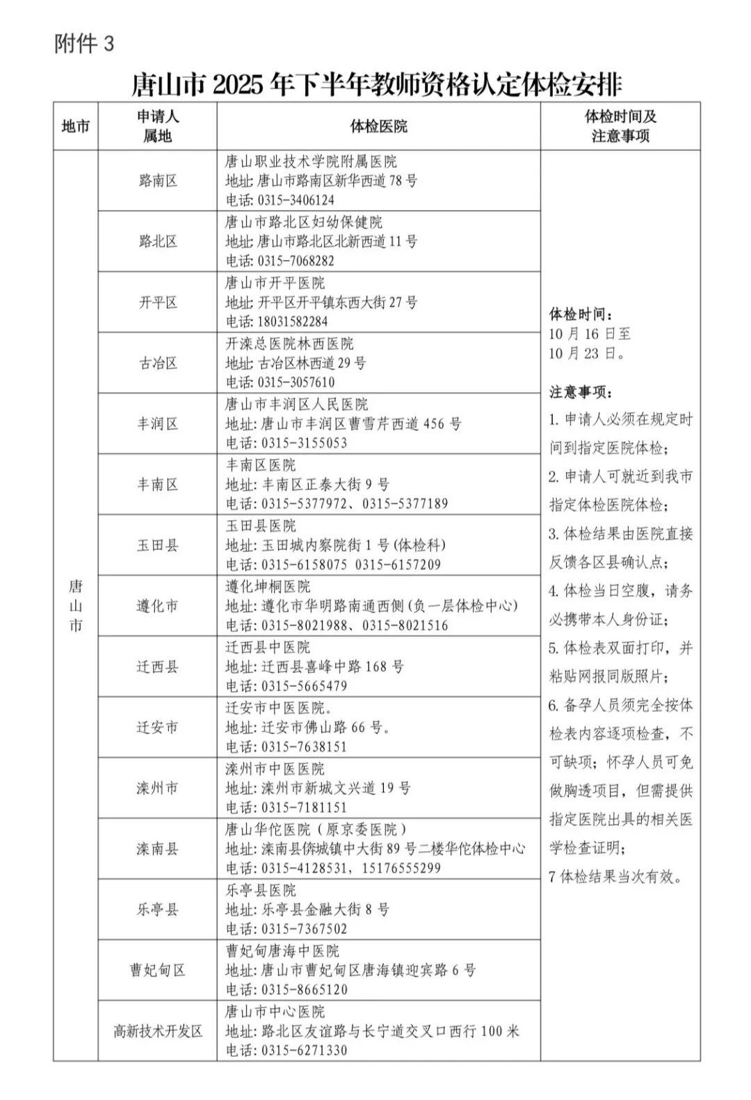 3.唐山市2025年下半年教师资格认定体检安排
