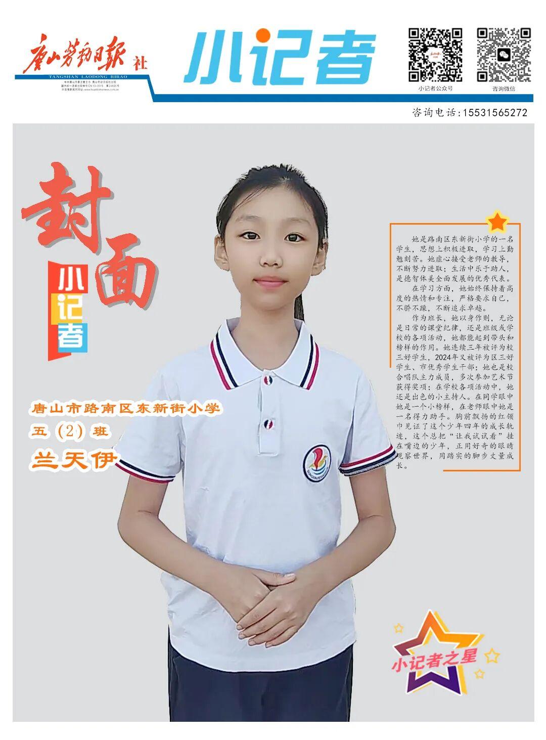 她是路南区东新街小学的兰天伊,思想上积极进取,学习上勤勉刻苦。她虚心接受老师的教导,不断努力进取;生活中乐于助人,是德智体美全面发展的优秀代表。
