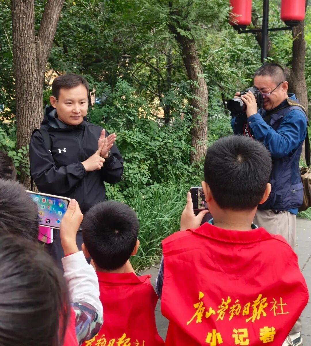 图为唐山劳动日报社摄影记者赵亮在指导报社小记者完成拍摄任务。记者 刘大民 实习生 李储航 摄