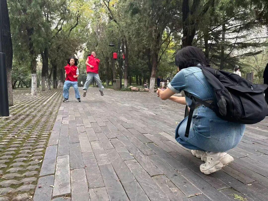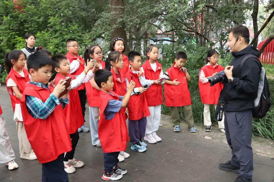 理论讲解后,老师们带领小记者们开启拍摄实践。周末的公园里运动健身的身影随处可见。王欢老师以踢毽子游客为拍摄对象指导小记者,“拍好运动图片颇具挑战,既要抓拍动态瞬间又要保证画面清晰,需要我们做好预判。”不一会儿功夫,小记者陆续交出了作品。王欢逐一点评,纠正常见问题,“试试从侧方蹲下来,低角度拍出来更显张力。”在王欢的示范下,小记者思路打开,拍得更起劲了。