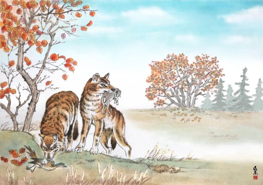 到了霜降节气,豺开始猎杀其它兽类存放起来,以储备越冬的食物,他们把捕获的猎物摆放在四面,看上去就像以兽祭祀一样。