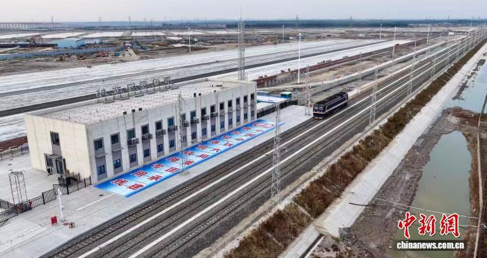 10月24日,曹妃甸港前物流有限公司铁路专用线工程正式开通运营。(中铁六局天津公司供图)
