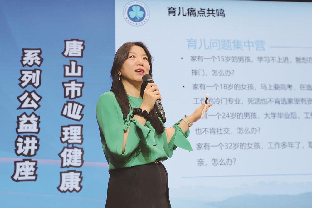 讲座上心理专家杜蕊正在分享育儿知识。 刘大民 摄