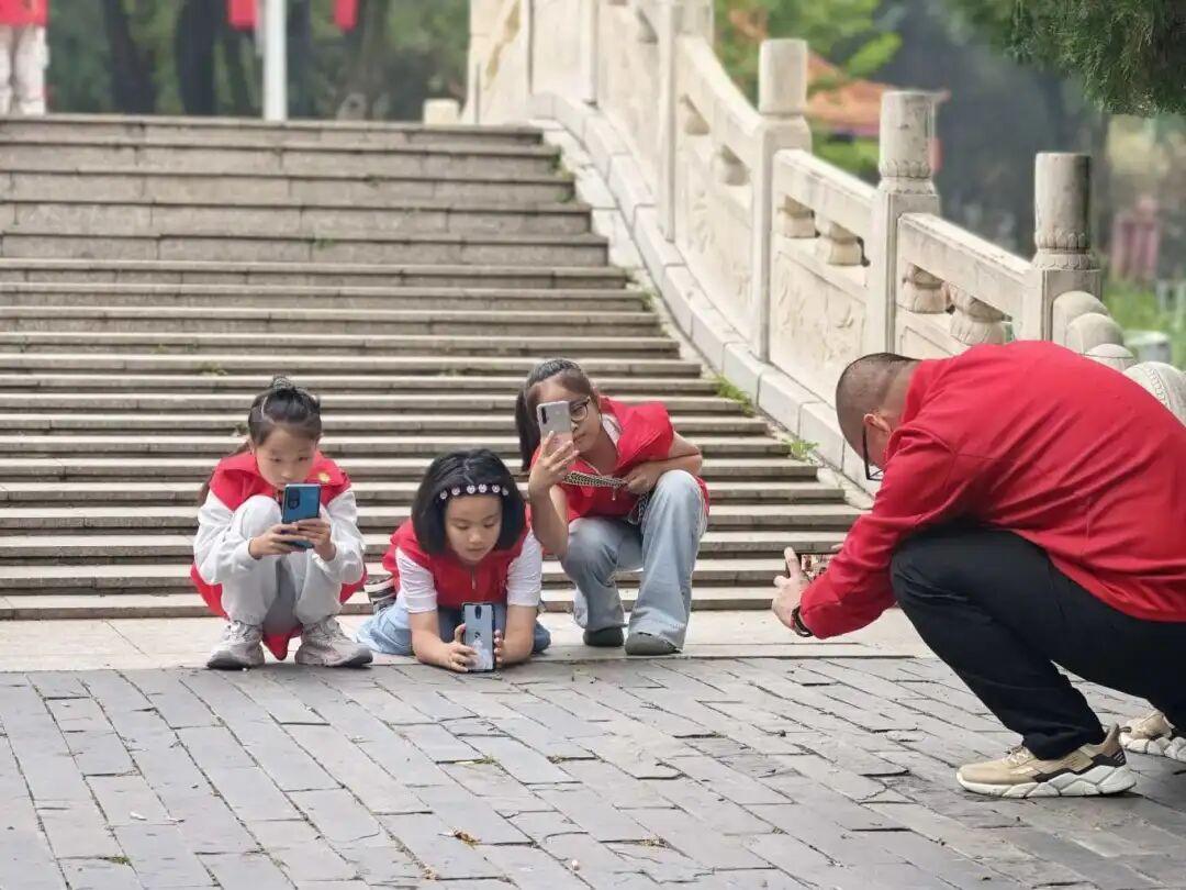这些照片里,没有刻意的构图,却藏着最鲜活的秋意:或许是镜头下悠然自得享受生活的人们,或许是石阶旁枯黄的落叶,又或是同伴取景时专注的侧脸。每一张定格,都是小记者们与凤凰山的秋日私语,是用眼睛发现美、用镜头留住秋的成长印记。