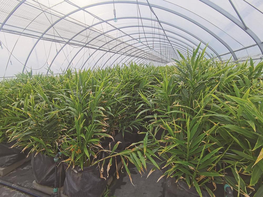 图为无土栽培的生姜收获在即。记者 梁赞英 摄
