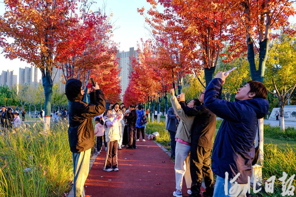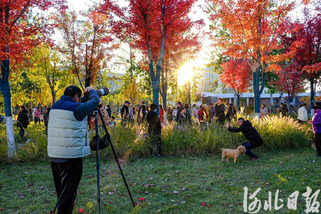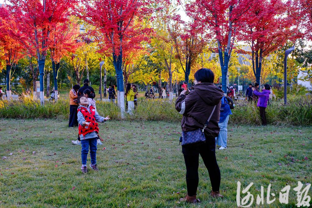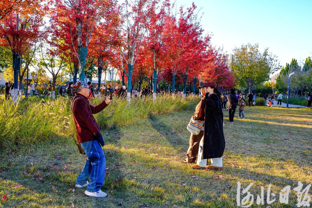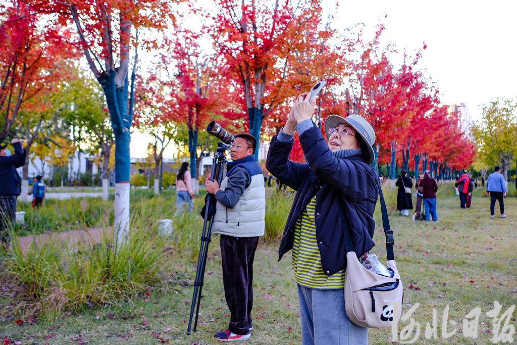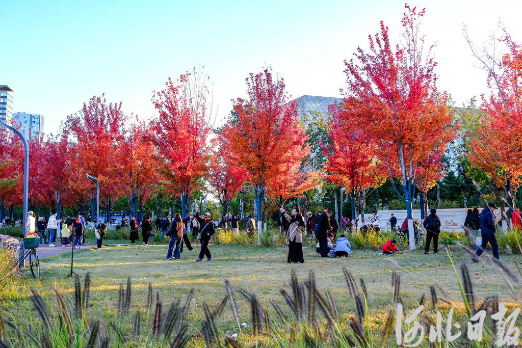 金秋十月,唐山市路北区人民公园的红叶进入最佳观赏期,吸引了众多市民前来拍照打卡。