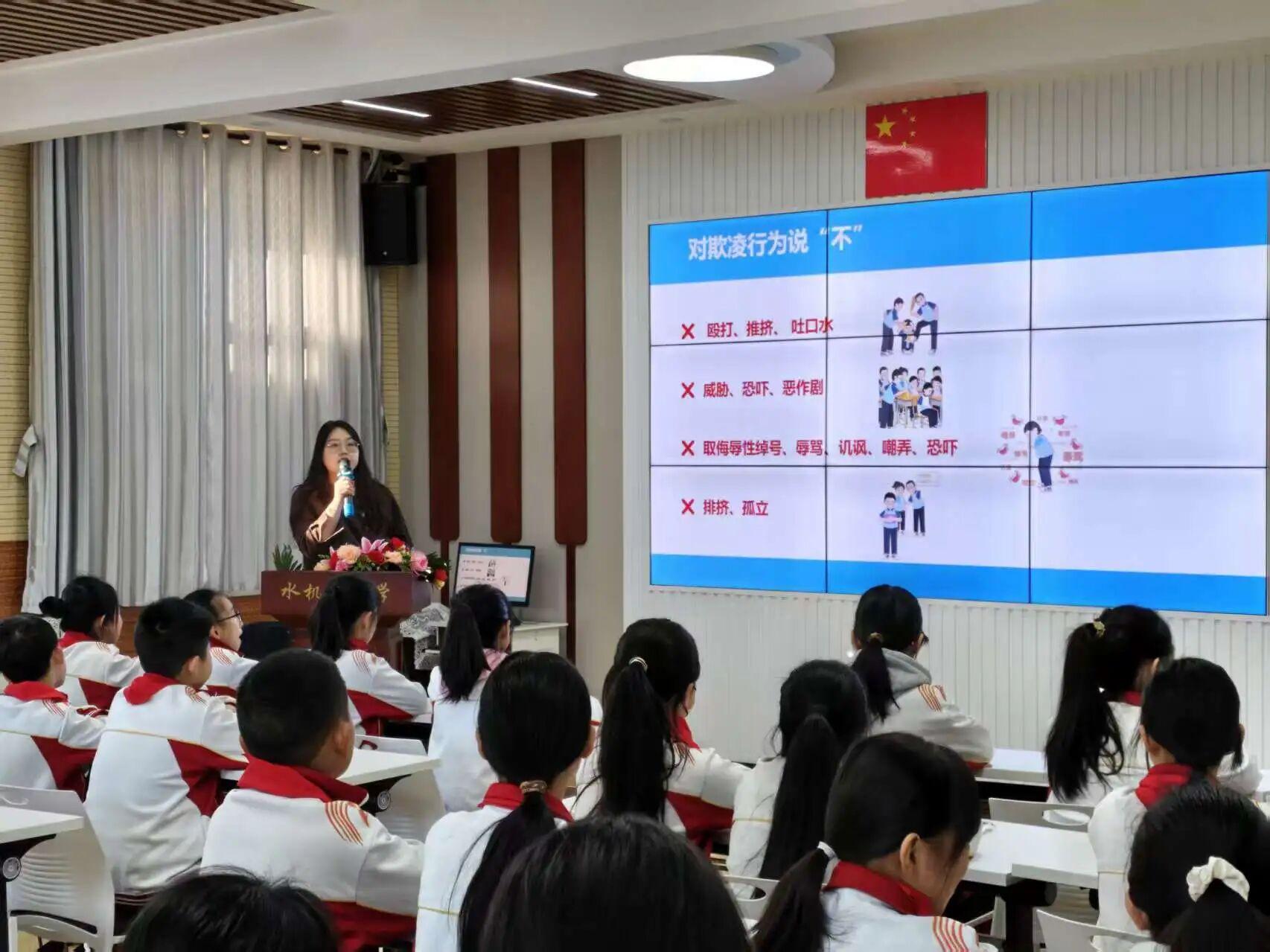 随后,水机路小学各班班主任同步开启防欺凌主题教育课堂。老师们以典型案例为切入点,搭配生动图文,系统讲解软暴力、肢体冲突等不同类型欺凌行为的表现形式与危害,引导学生深刻认识“欺凌零容忍”的重要性,树立“拒绝欺凌、勇敢说‘不’”的坚定态度。王警官全程观摩课堂并给予指导,对班主任教学设计的针对性和实用性给予充分肯定。