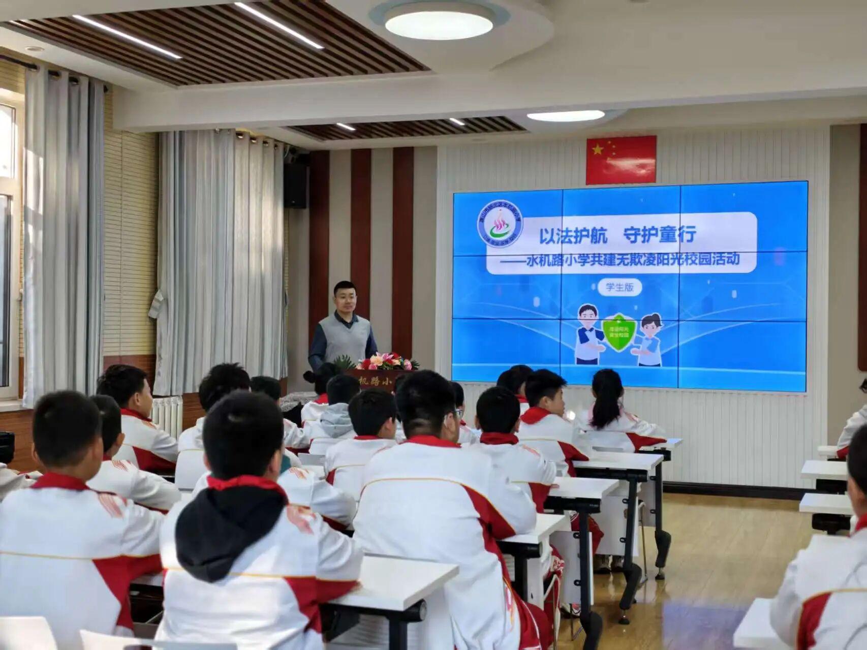 环渤海新闻网消息( 郝毅 李佳黛)为强化学生自我保护意识,筑牢校园安全防线,营造安全、阳光、和谐的成长环境,近日,水机路小学特邀法治副校长王警官入校,以“以法护航 守护童行”为主题,开展共建无欺凌阳光校园专题活动,用法治力量为学生成长保驾护航。