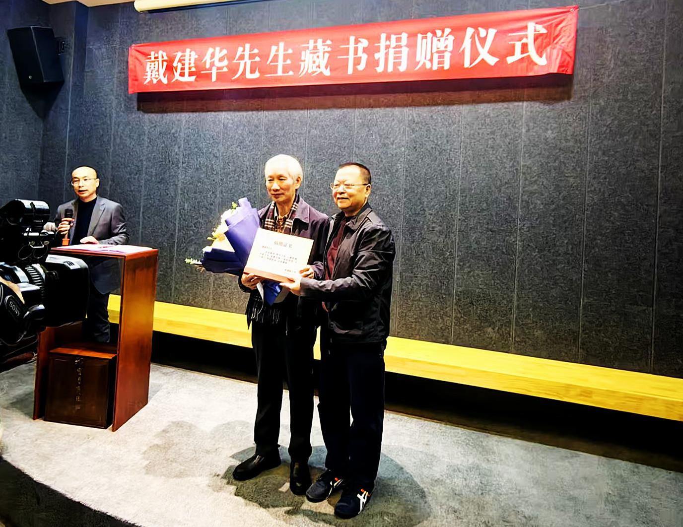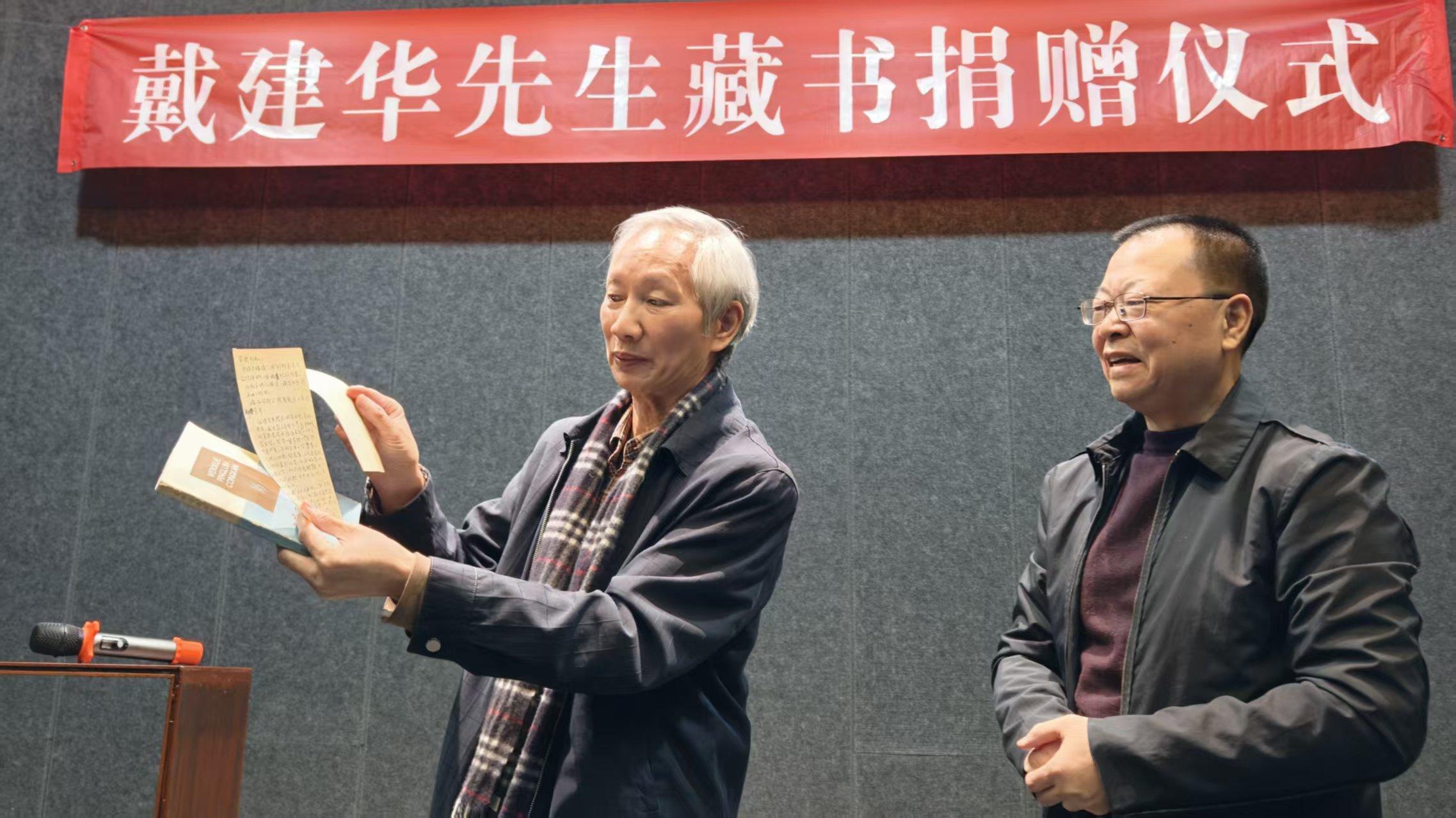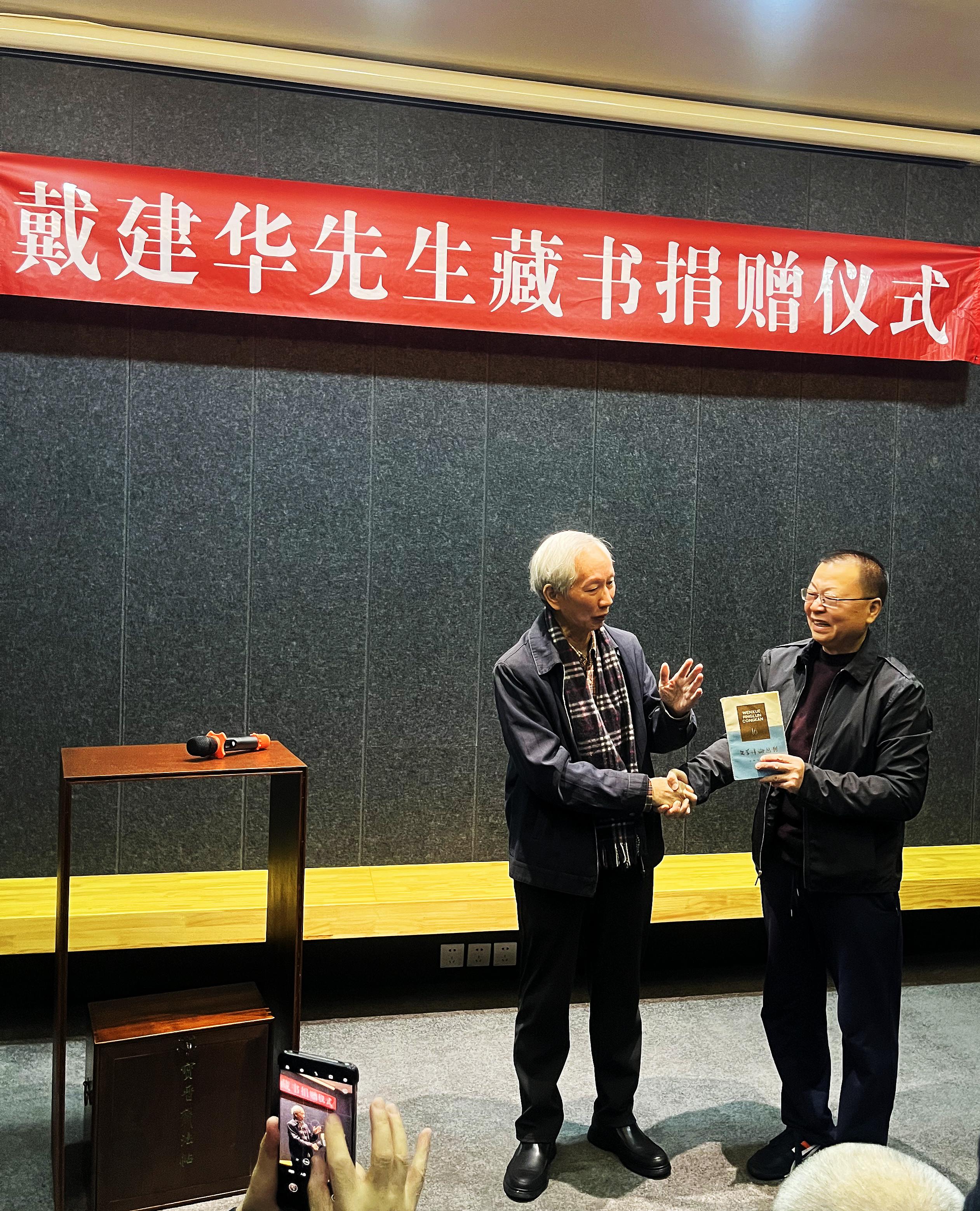 “书籍就像我的孩子,我曾经阅读过、使用过……现在把它们送到南湖藏书楼,我就心安了!”30日上午,训诂学者、词典编撰家、藏书家戴建华先生的藏书捐赠仪式在南湖藏书楼举行。此次戴先生将自己“顺宁斋”所藏文史哲类书籍千余册捐赠给南湖藏书楼,其中包括很多珍贵的名家批注本、签名本。他表示,书籍如同自己的子女,捐赠就是给它们找到一个足以信任、可以托付的去处,同时,这些书籍也会分享给更多和自己志趣相投的爱书之人。私人藏书区别于图书馆程式化的收藏,体现的更多是个人的阅读趣味,这次捐赠也是对私人藏书去向的一次有益的探索。本次活动还邀请到了国内学界、藏书界多位名家,大家一起叙谈文脉、畅享书香。