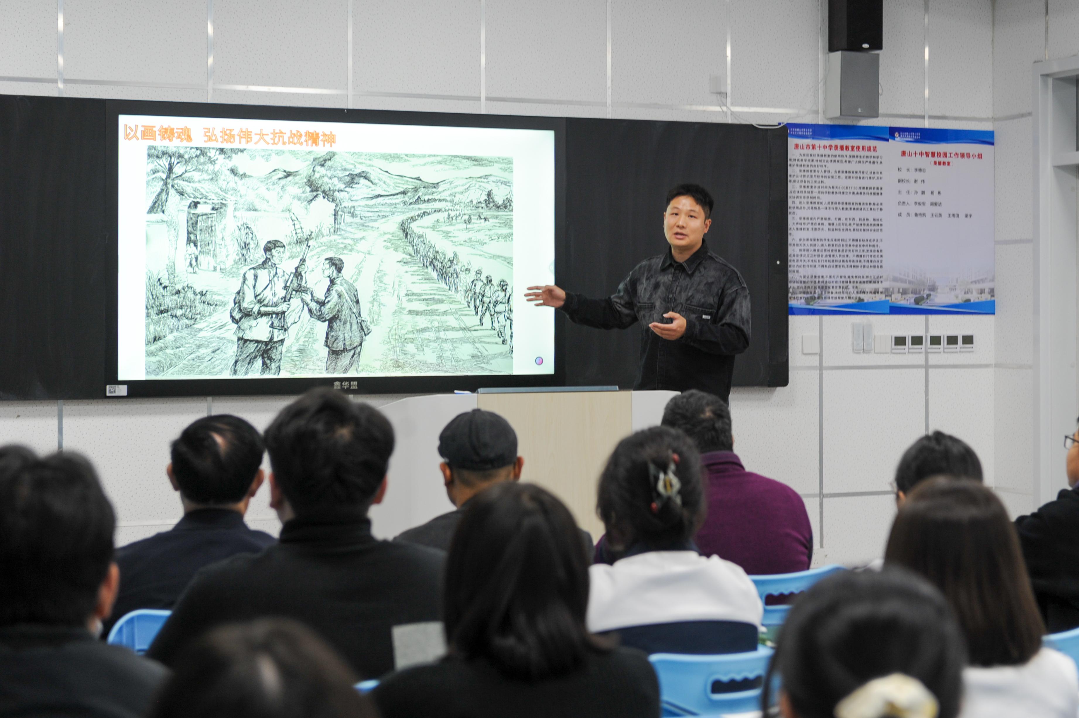 唐山十中美术教师孔祥瑞分享抗战绘画作品。梁宇 摄