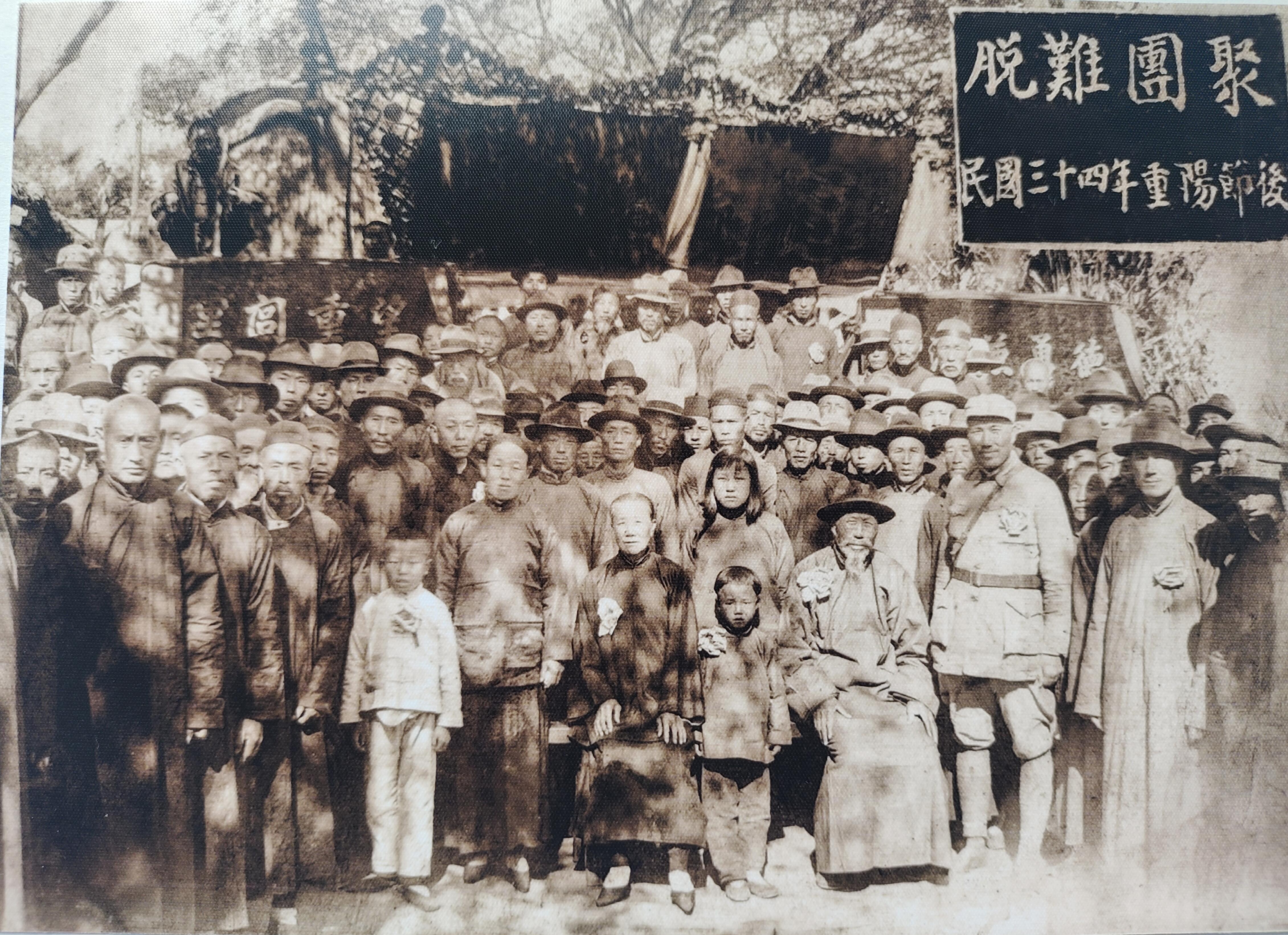 抗战胜利了,日本投降了,被关押在日本宪兵队长达两年之久的家人被营救出狱。人们兴高采烈,奔走相告,我的家人也一样,在一九四五年重阳节与街坊邻里一起拍下这张有历史意义的珍贵照片,以此来纪念抗战胜利和家人出狱脱难团聚、重获新生。