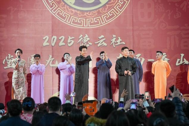 演出中,孟鹤堂与周九良默契搭档,两人台风稳健、包袱密集,时而妙语连珠展现语言智慧,时而肢体夸张演绎经典桥段,他们在互动环节中与观众的趣味调侃更将现场气氛推向高潮。台上台下笑语欢声,荧光棒与灯牌交织成璀璨星河,也让远道而来的游客深深感受到唐山的热情与文化的魅力。