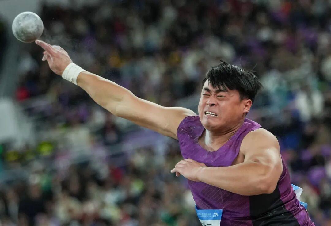张浩辰在男子铅球决赛中奋力一掷。新华社记者 李一博 摄