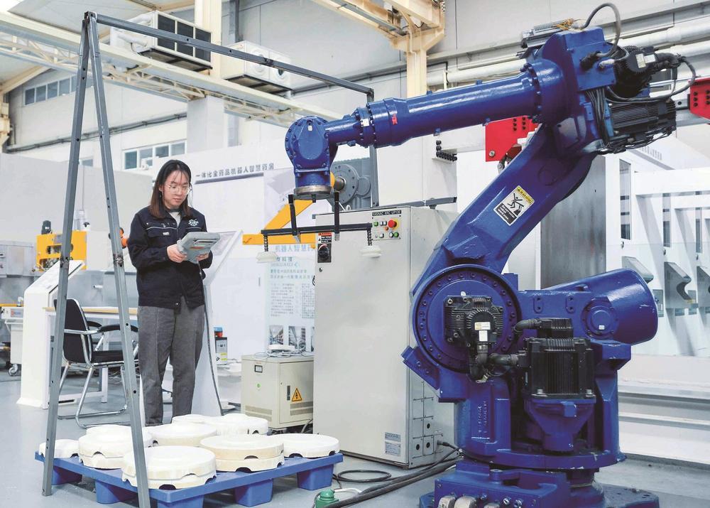 从原料精炼到釉彩喷涂,95%工序由“机器人军团”完成,从根源避免人工误差。“以往人工操作高压注浆系统,劳动强度大、效率低,质量参差不齐。”贾萌萌介绍,如今智能辅助系统指挥机器人作业,劳动效率提升40%,成品率提高30%,彻底改变了传统生产模式。