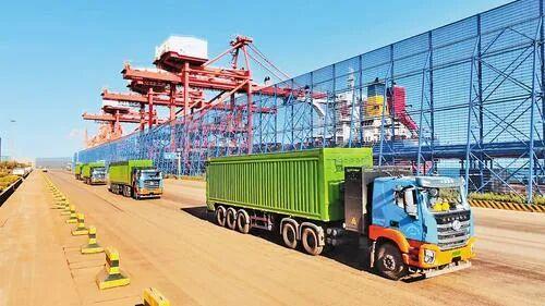 日前,新能源重卡在河北港口集团唐山港集团股份有限公司矿石码头运输。任小霞 摄