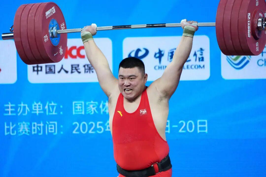 张喜亮在举重男子109公斤以上级决赛中全力一举。新华社记者 杨晨光 摄