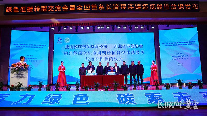 唐山松汀钢铁有限公司与河北省节能协会签订战略合作协议。长城网·冀云客户端记者 邢丁 摄