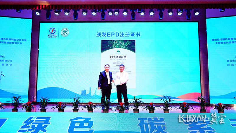 为松汀钢铁颁发基于国际标准的环境产品声明(EPD)证书。长城网·冀云客户端记者 邢丁 摄