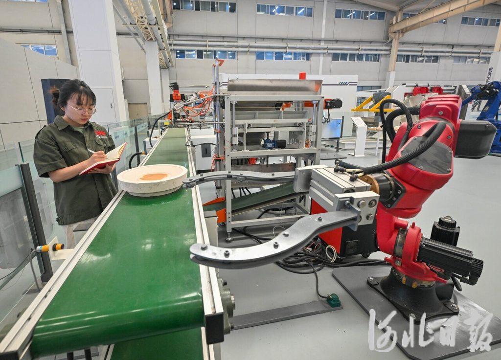 7月19日,唐山机器人体验展示中心,技术人员正在调试陶瓷工艺制作机器人。(资料片)河北日报记者 赵杰 摄