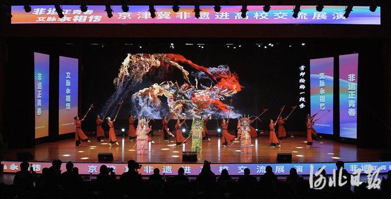河北日报客户端消息(王健、张惠静、王育民)12月12日,由北京市东城区文化和旅游局、北京市延庆区文化和旅游局、天津市津南区文化和旅游局、河北省唐山市曹妃甸区文化广电和旅游局联合举办的“非遗正青春 文脉永相传”京津冀非物质文化遗产交流展示展演活动,走进唐山海运职业学院与曹妃甸职业技术学院。
