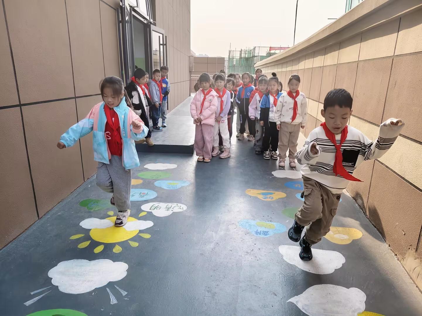 “零点体育”是清晨的活力序曲,丰富多彩的游戏则是课间时光的快乐奏章。游戏中,校园小主人管理团队的游戏领航员,组织同学们玩“跳房子”“老鹰捉小鸡”“丢手绢”等传统游戏,也玩自己设计的音乐游戏、地面游戏,课间变得秩序井然又充满乐趣。