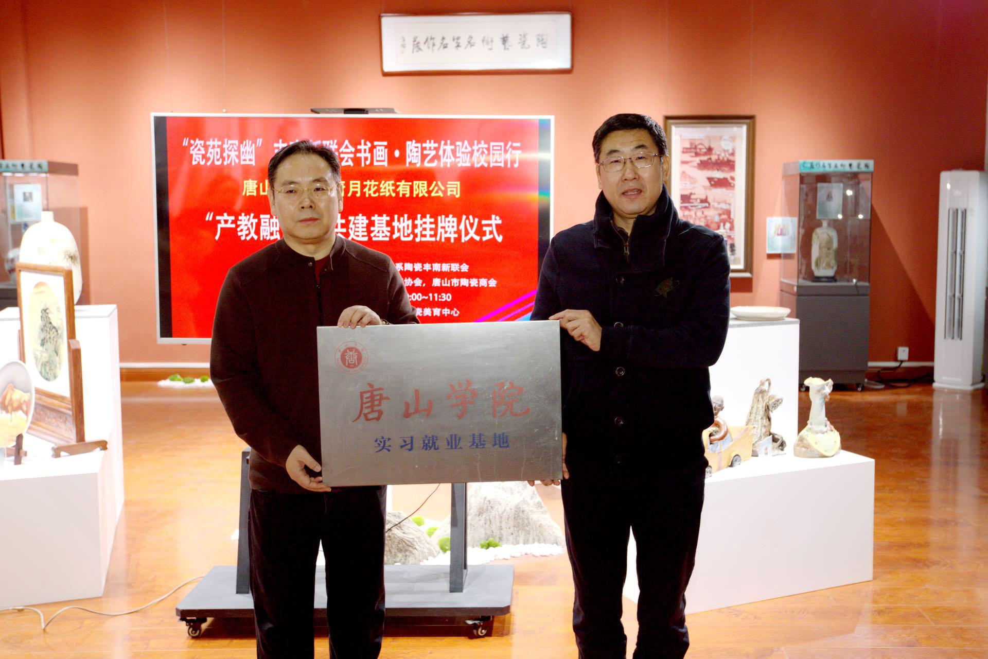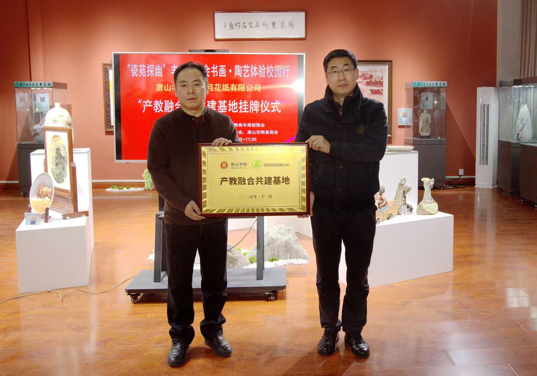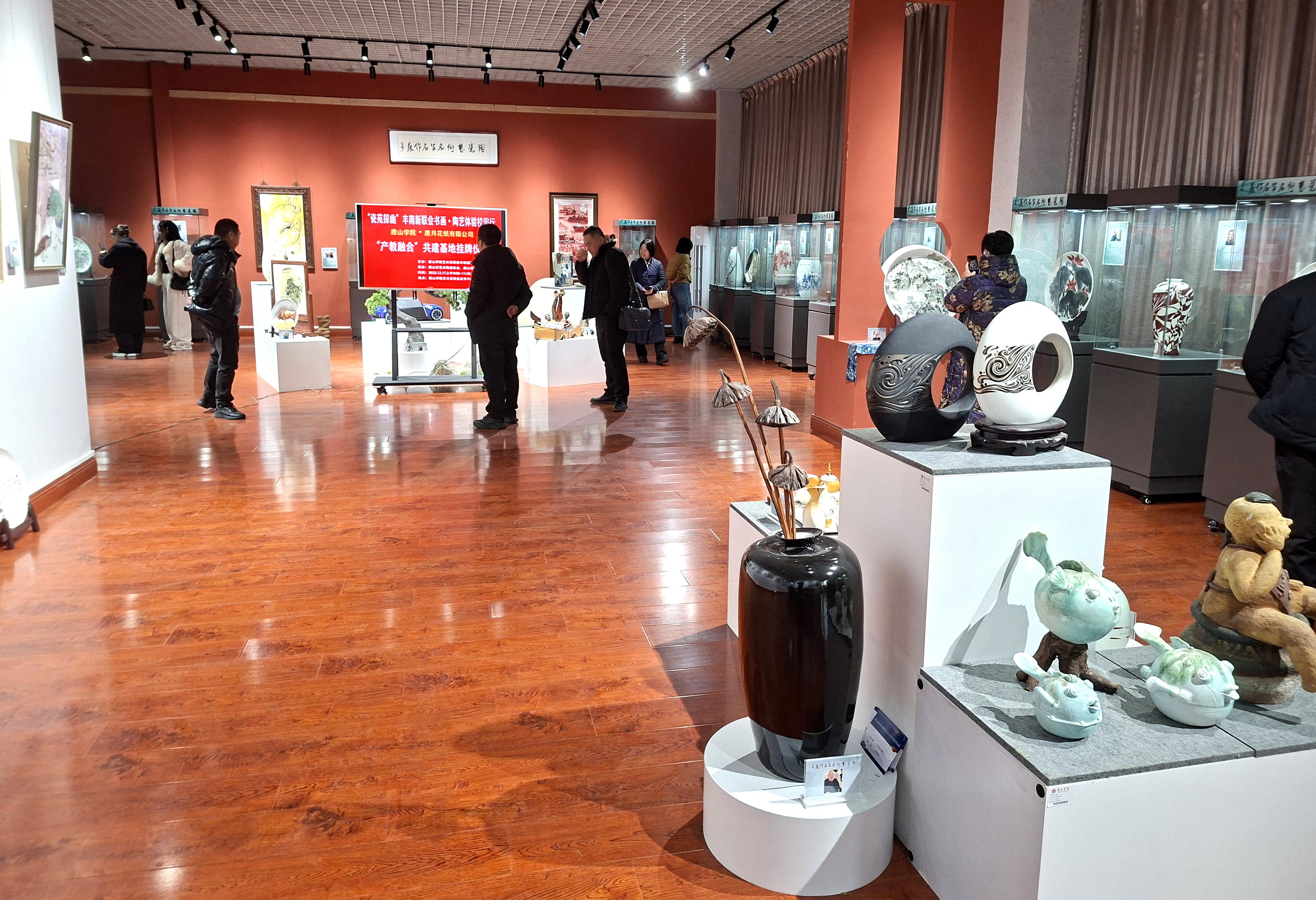 12月17日上午,唐山学院与丰南区新的社会阶层人士联谊会在唐山学院艺术系陶瓷美育中心共同举办书画、陶艺体验活动。新联会人士兴致勃勃地参观了陶瓷艺术展厅,学院还特邀中国陶瓷艺术大师李剑平和多位省级陶瓷艺术大师现场展示书画、陶瓷艺术创作技艺,并与爱好者互动。现场还举行了唐山学院艺术系和唐月花纸有限公司签订实习就业基地仪式,并将陶瓷美育中心作为陶瓷文创研发基地。主办方郑重表示,此次活动旨在促进社会力量和高校联姻,建设好陶瓷美育基地,开发陶瓷文创产品,凝心聚力弘扬北方瓷都陶瓷文化,传播唐山陶瓷艺术。