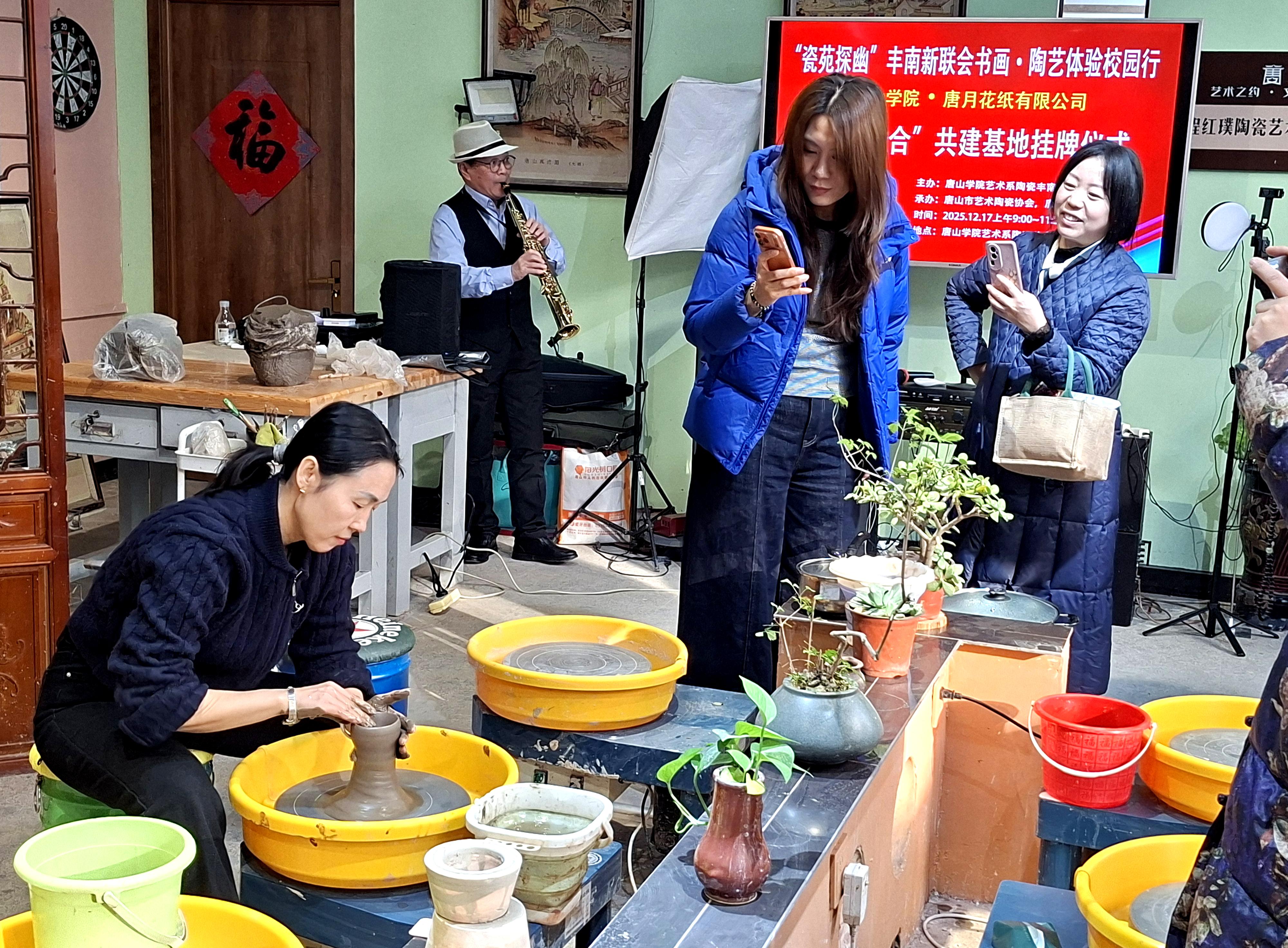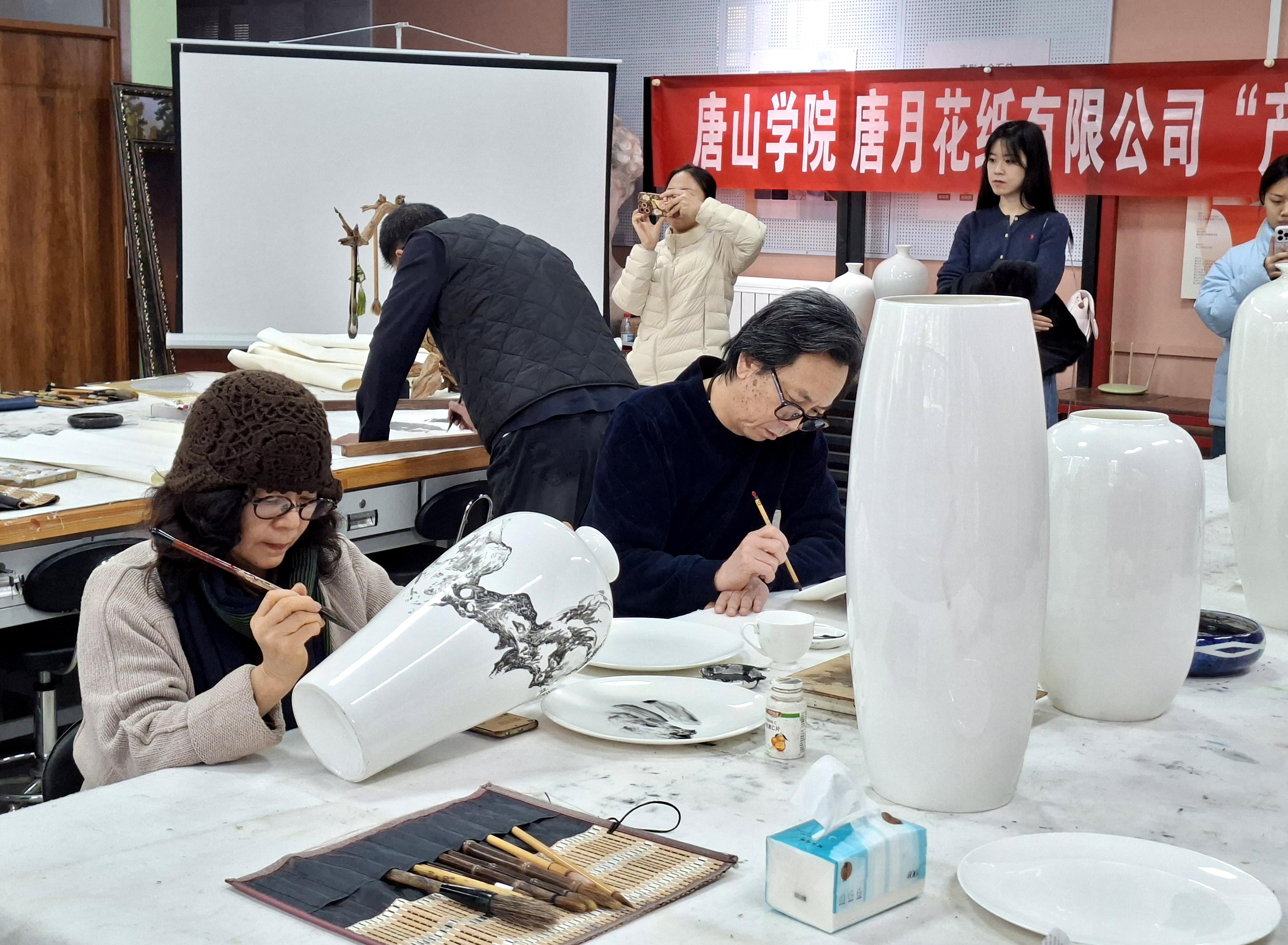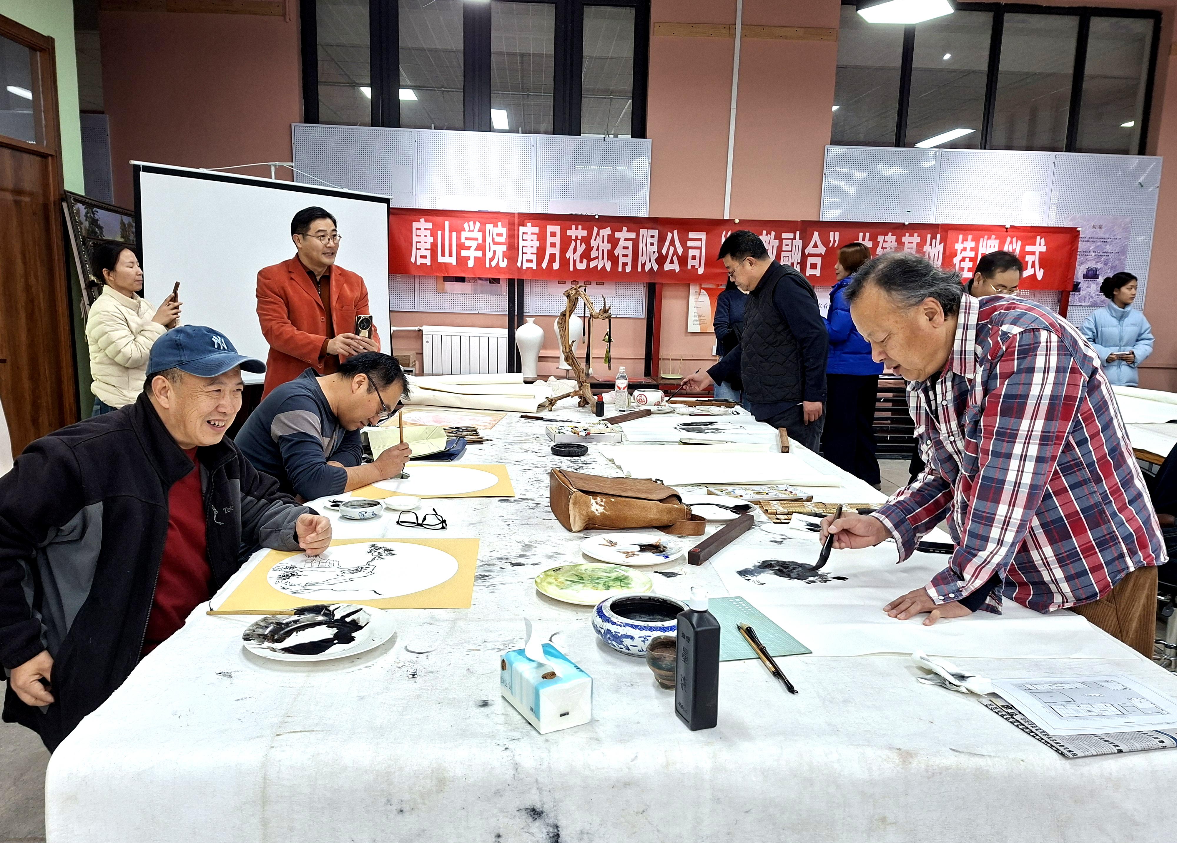 12月17日上午,唐山学院与丰南区新的社会阶层人士联谊会在唐山学院艺术系陶瓷美育中心共同举办书画、陶艺体验活动。新联会人士兴致勃勃地参观了陶瓷艺术展厅,学院还特邀中国陶瓷艺术大师李剑平和多位省级陶瓷艺术大师现场展示书画、陶瓷艺术创作技艺,并与爱好者互动。现场还举行了唐山学院艺术系和唐月花纸有限公司签订实习就业基地仪式,并将陶瓷美育中心作为陶瓷文创研发基地。主办方郑重表示,此次活动旨在促进社会力量和高校联姻,建设好陶瓷美育基地,开发陶瓷文创产品,凝心聚力弘扬北方瓷都陶瓷文化,传播唐山陶瓷艺术。