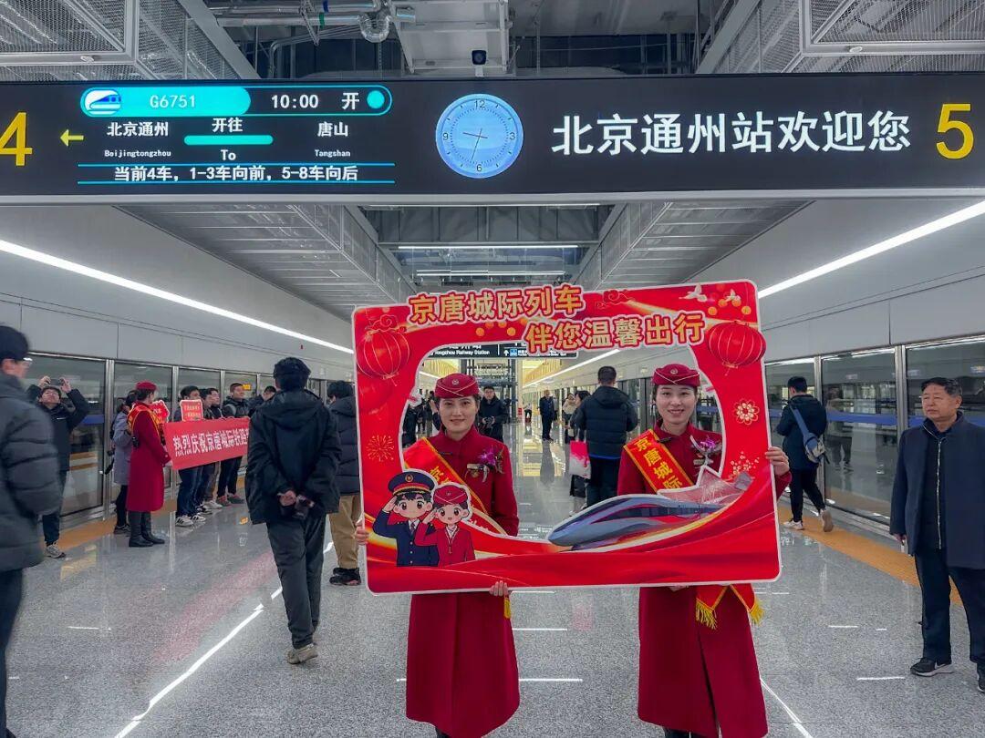 12月30日10:00,G6751次列车从北京通州站出发驶向唐山站,备受关注的京唐城际铁路全线开通运营。