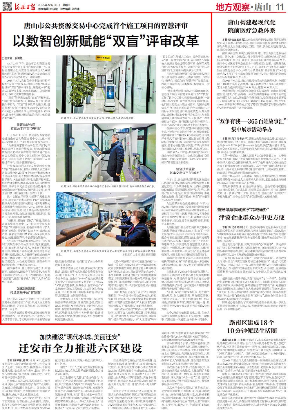 12月23日下午,唐山市公共资源交易中心完成首个施工项目的智慧评审工作,这标志着唐山公共资源交易领域迈入“AI赋能+规范高效”智慧新阶段,这也是唐山市深化“双盲”评审改革的又一创新举措。