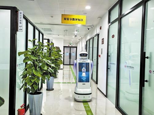 12月25日,唐山市公共资源交易中心内,智能机器人在评标区巡检。河北日报记者 王育民 摄