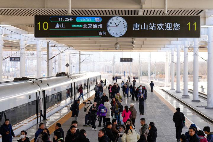 12月30日,旅客在唐山站乘车。(赵亮 摄)