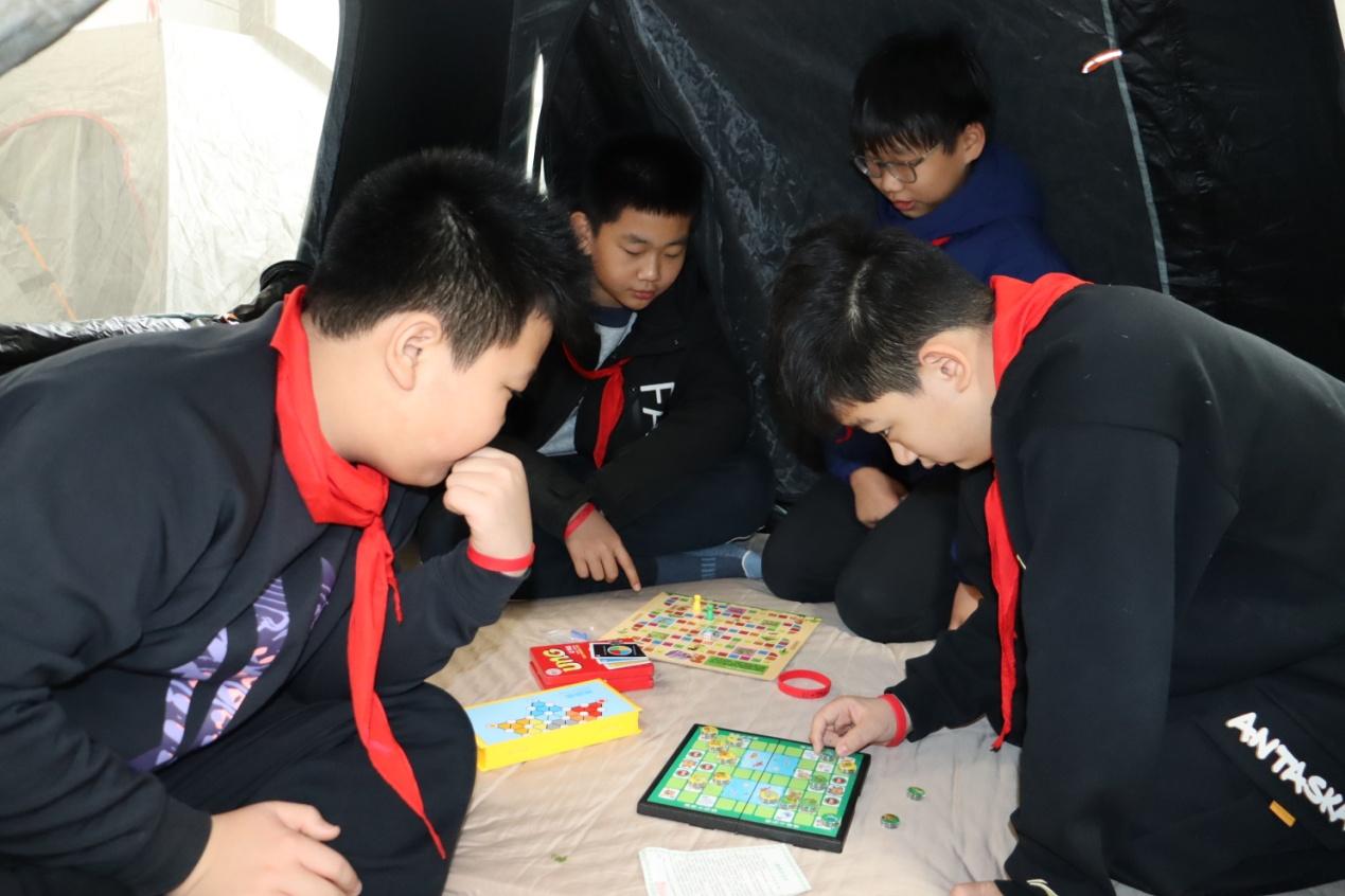 活动源自学校对高年级学生心理与成长需求的细致观察。“我们希望打造一个既有趣又温馨的专属空间,让孩子们放松身心,同时在游戏中锻炼思维,在互动中学会合作与规则。”该校副校长兰晶说。从帐篷选型、营地命名到规则制定,学生都是“主角”。孩子们从家中带来帐篷,合作搭建;经共同商议,诞生了数个如“输不起者练习室”(汇集各类棋具)、“冲鸭营地”(摆放经典读物)等个性十足的“领地”。自主管理、共享共建的理念悄然生根。