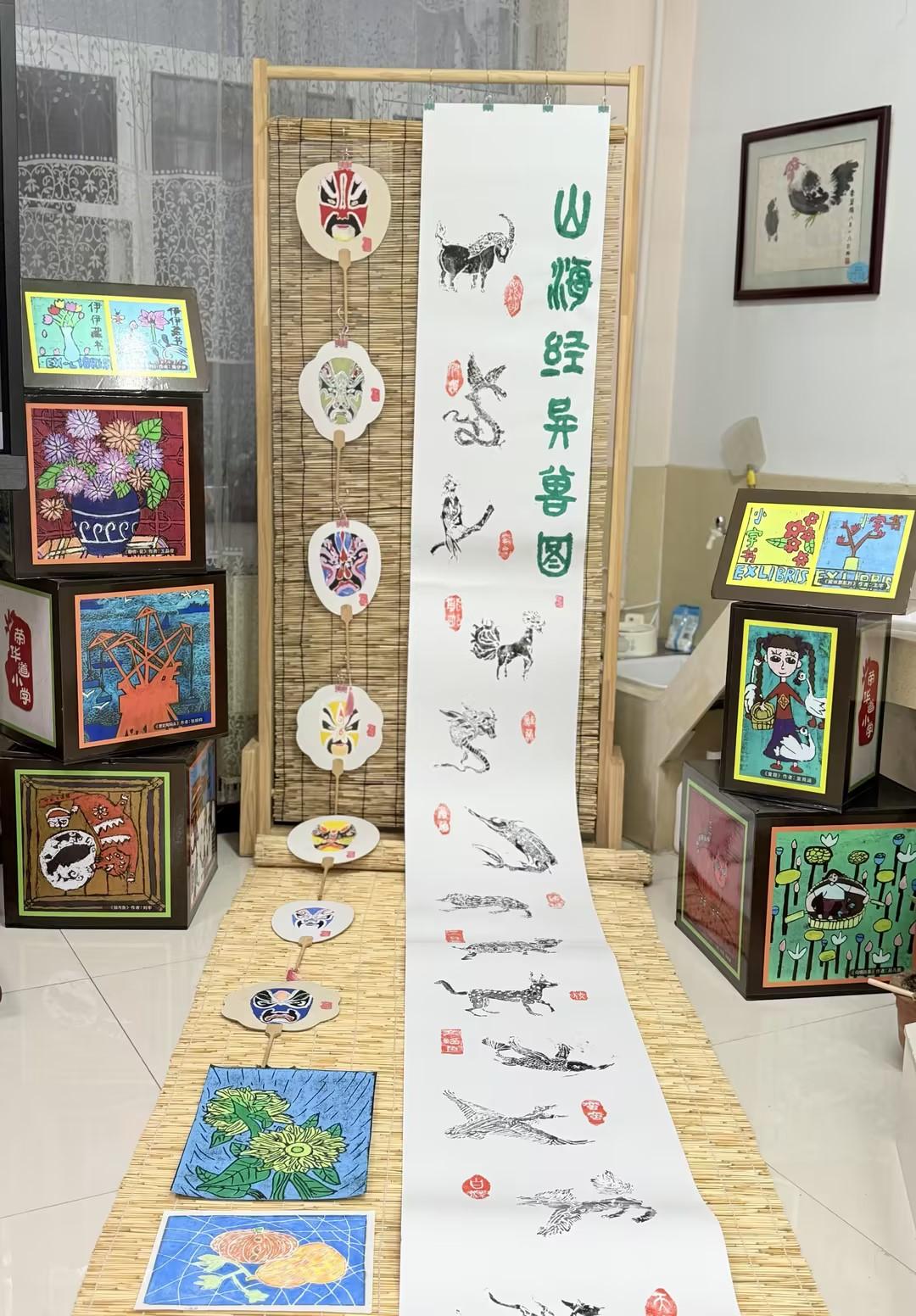 在社团活动中,孩子们的创作主题更为多样和深入。他们曾印制过生动可爱的“马年挂历”,将生肖文化与节日氛围融入方寸画幅;也曾在阅读《山海经》后,用版画语言描绘出自己心中奇诡绚丽的“异兽图”,让古老的传说在当代孩童的笔下获得新的视觉生命。一幅幅作品,不仅是技艺的练习,更是阅读、思考与审美感知的综合体现。