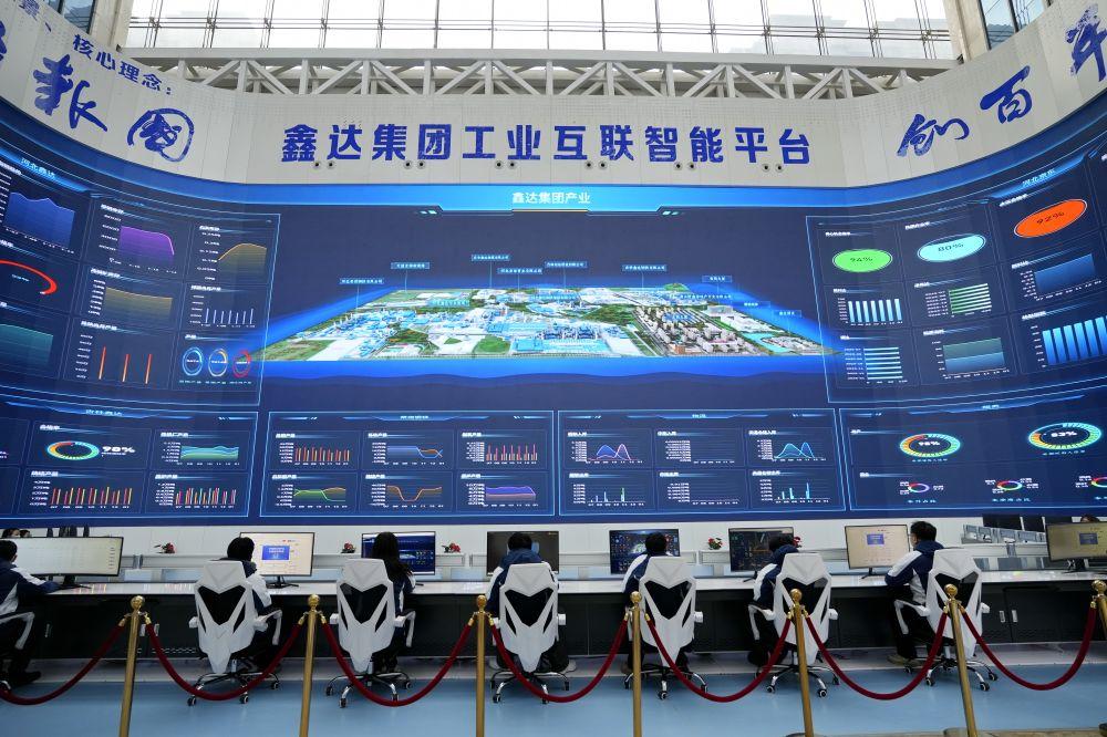 ↑1月14日,河北省迁安市鑫达钢铁集团工作人员在监测工业互联智能平台数据。