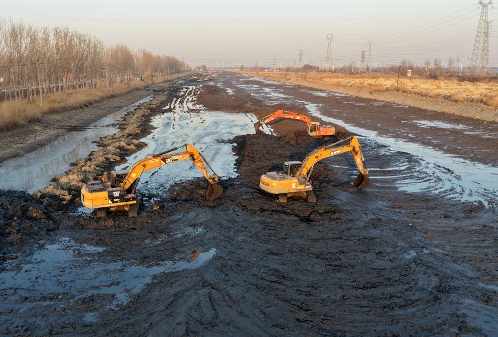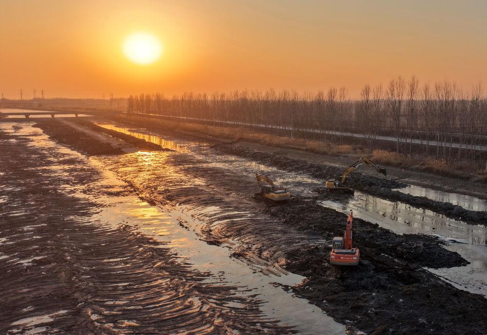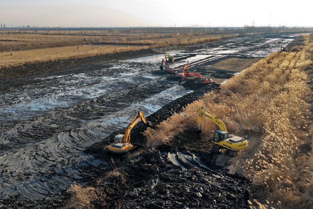 冬修水利正当时,河北省唐山市丰南区抢抓冬季河流水位低的有利时机,进行河道疏浚、加固堤坝等作业,为农业生产和防汛打好基础。