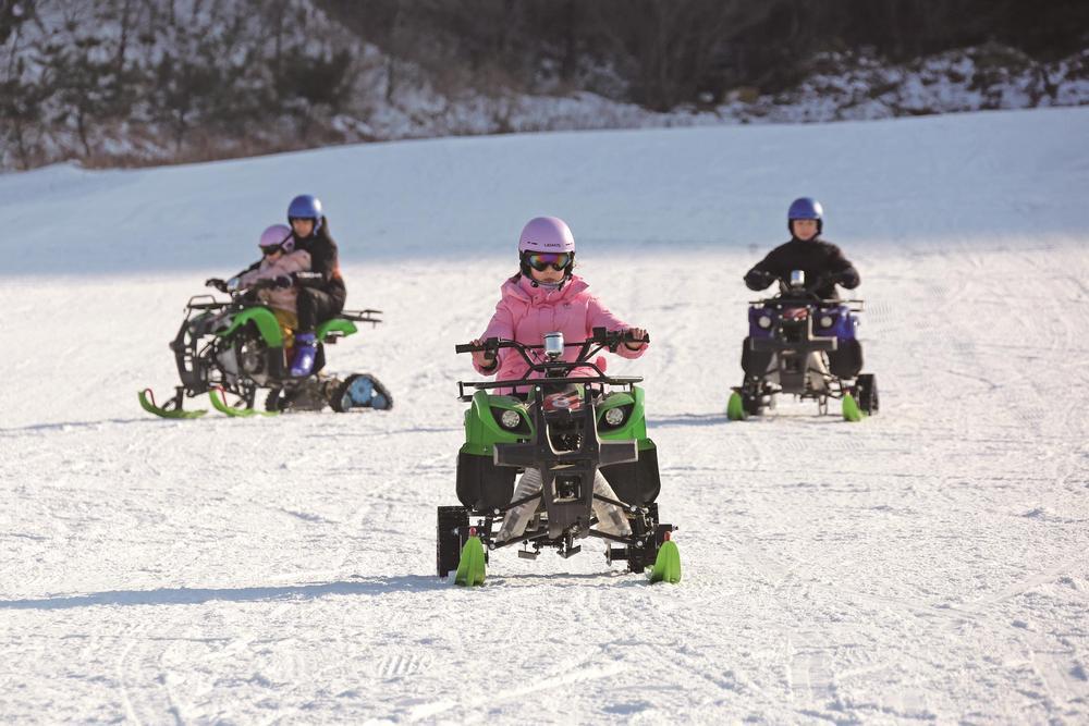小朋友在玉田县玉龙湾滑雪场体验雪地摩托项目,尽享冰雪运动乐趣 。